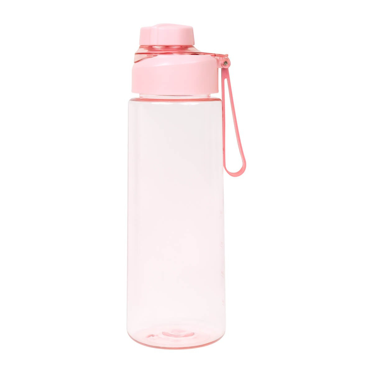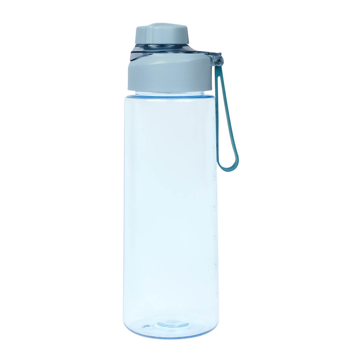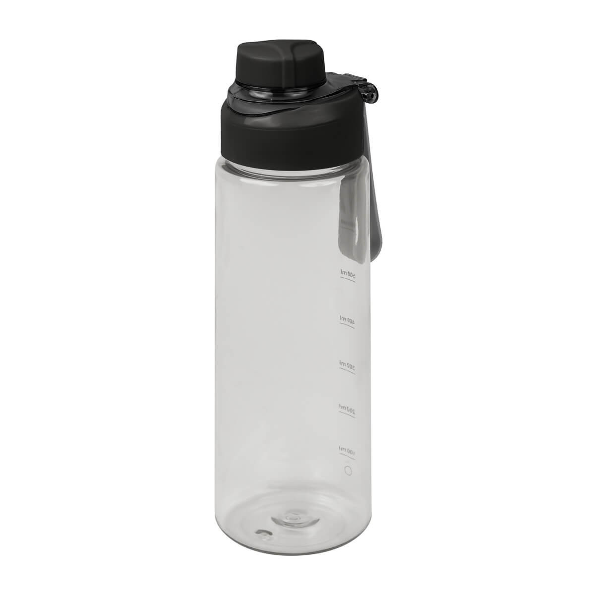 Cilindro de plastico de una pared. Tapa de plastico con sistema de rosca y sobretapa para la boquilla. Cuenta con asa de silicon para llevarlo comodamente e indicador de mililitros. Perfecto para el dia a dia.