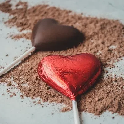 Colombina de chocolate de carita feliz o corazón en aluminio del color de su elección.