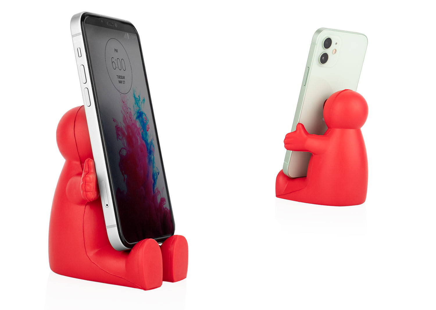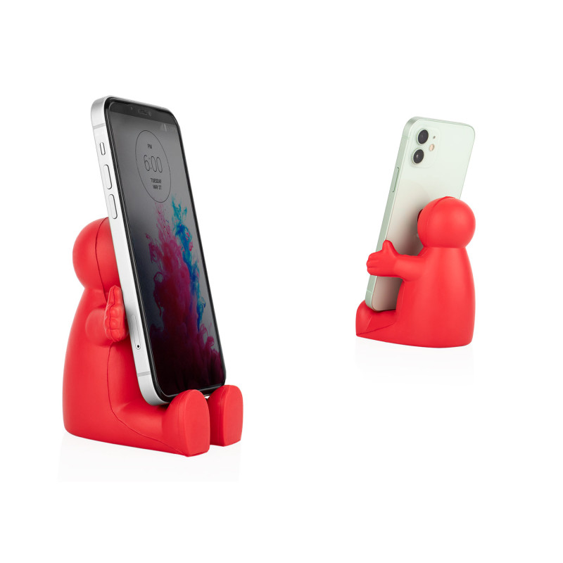 Holder para celular elaborado en PU con diseño divertido y funcional que también actúa como aliviador antiestrés. Su forma amigable y flexible permite sostener el dispositivo mientras ofrece una experiencia táctil relajante. Ideal para escritorios, combina utilidad y entretenimiento en un solo producto.