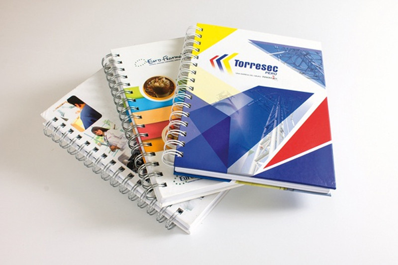 Pasta dura cartón europeo plastificado (mate o brillante) full color Guardas cote 210gr blanco. 100 hojas internas a 1 tinta; bond 75grs Argollado x 16 anillos doble. (color blanco o negro)