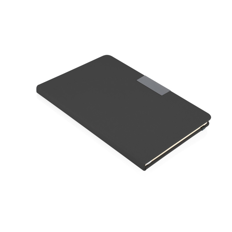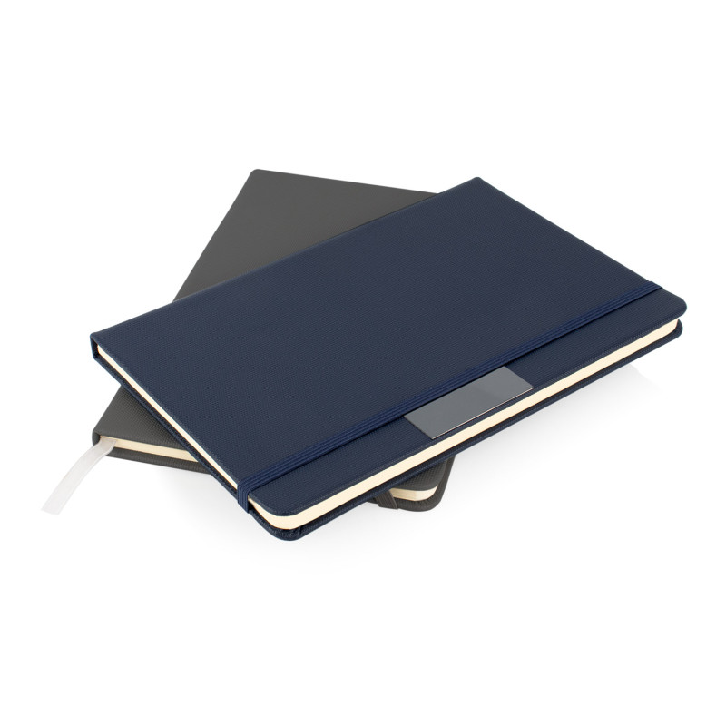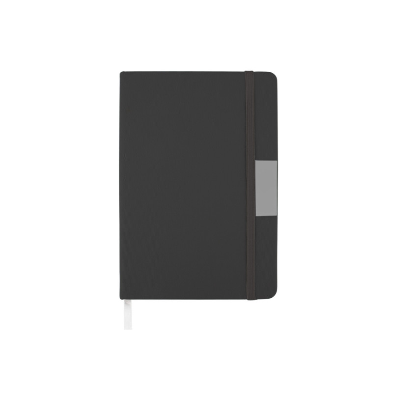 Libreta elegante con 80 hojas de papel rayado en formato A5, ideal para organizar tus ideas y notas diarias. Incluye una placa metálica perfecta para personalización, cinta separadora para marcar tus páginas y un elástico de cierre que mantiene la libreta siempre protegida. Su textura y diseño moderno le aportan un estilo profesional.