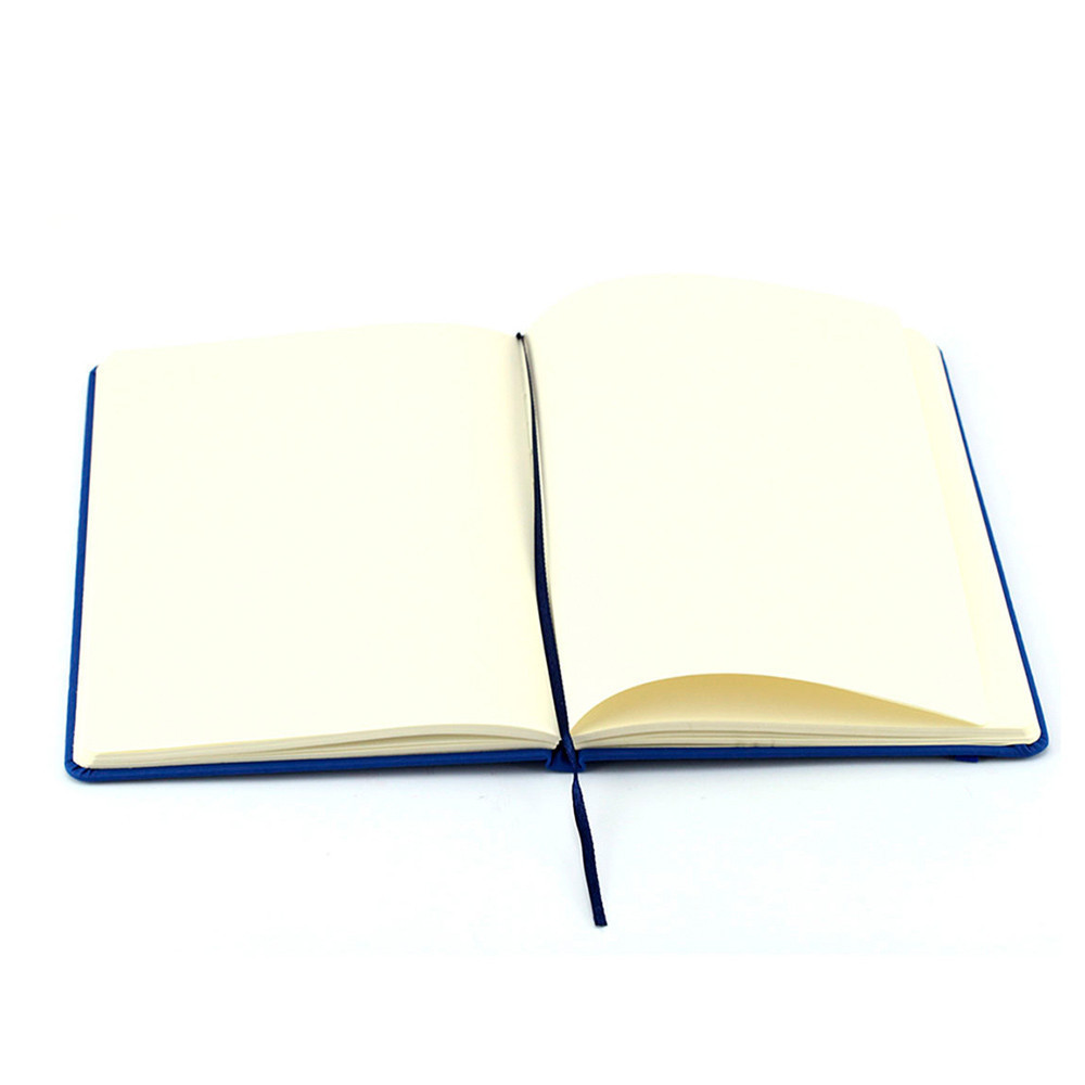 Libreta con cubierta en poliuretano con cierre elástico. Papel crema sin rayas. 100 hojas.