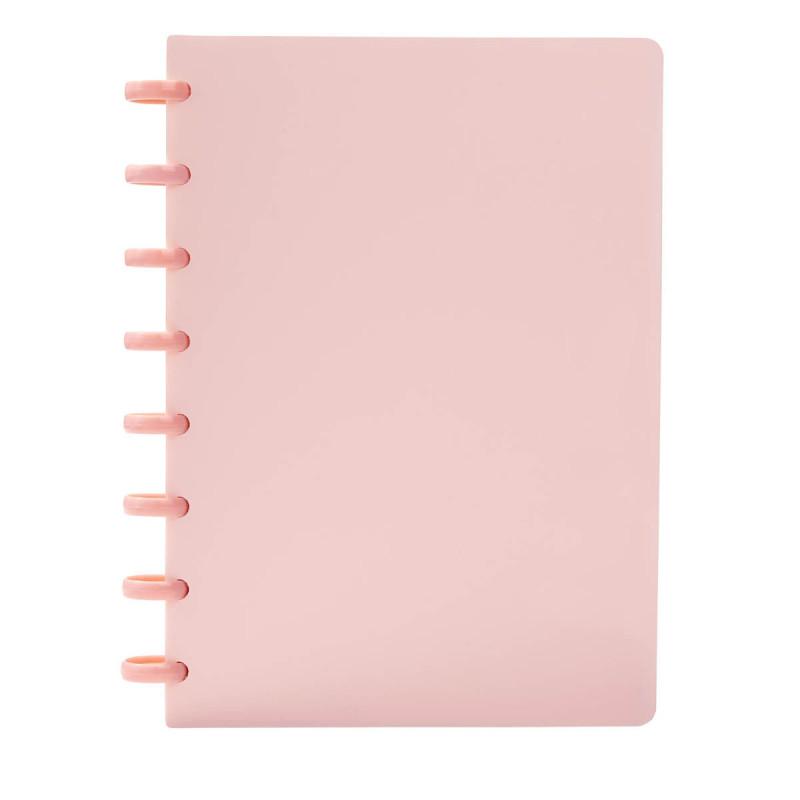 Libreta con 80 hojas a rayas. Cubierta de plastico. Incluye 8 aros de plastico que funcionan como espiral y permite la incorporacion de hojas removibles, lo que facilita la reorganizacion de tus apuntes, cuantas veces lo desees. Ideal para notas, bocetos o planificacion, esta libreta combina funcionalidad y un diseno innovador.