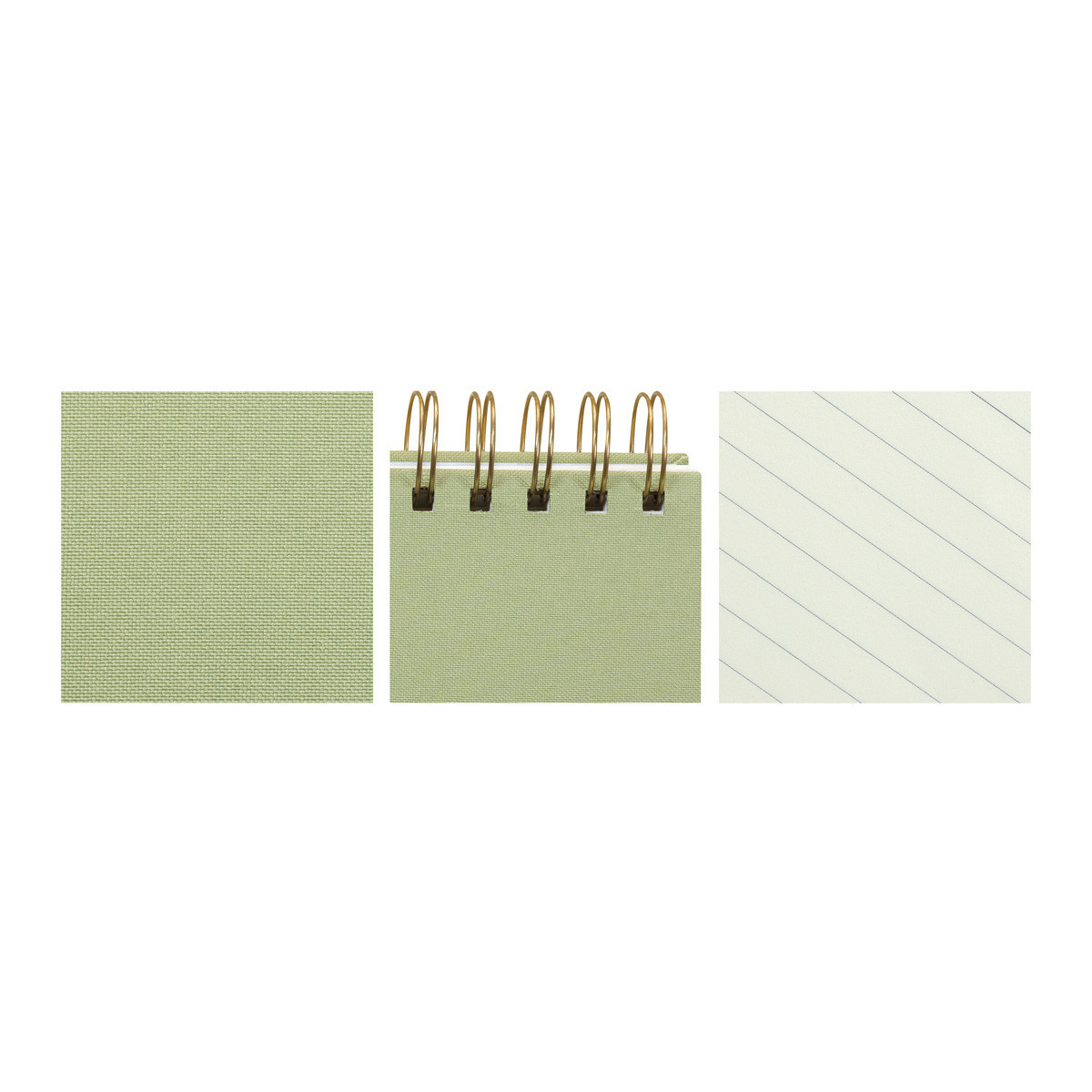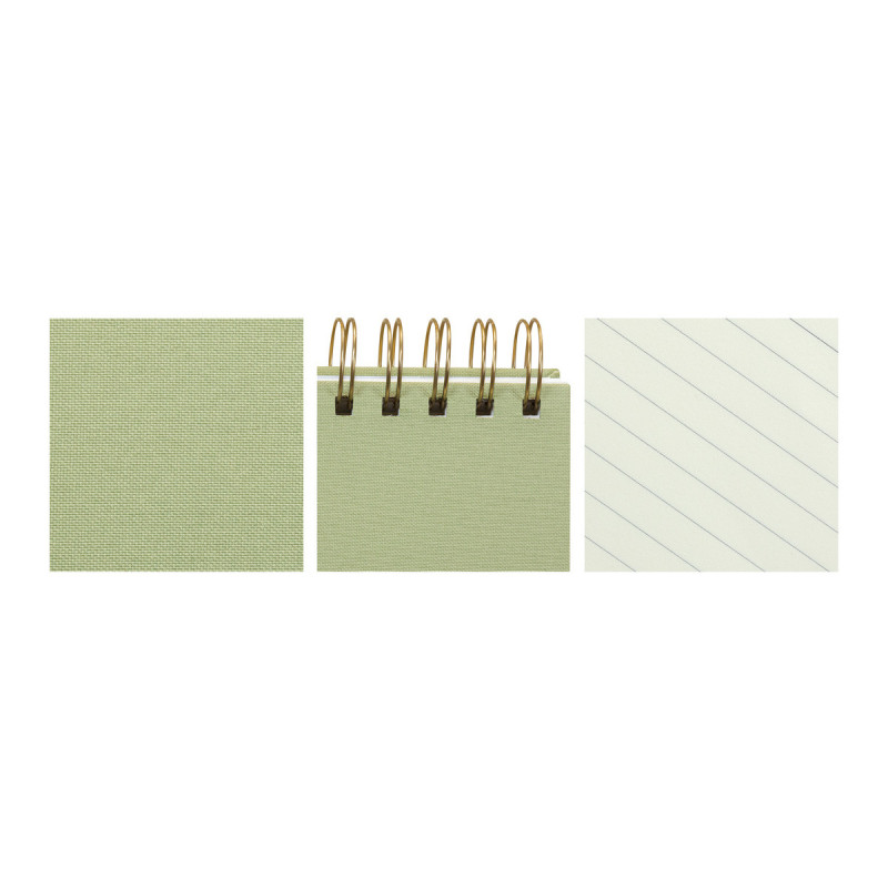 Libreta de espiral con 100 hojas a raya. Cubierta rígida de tela. Su formato vertical, hace que se distinga de las libretas tradicionales, ofreciendo una experiencia diferente y practica al tomar notas o plasmar ideas.