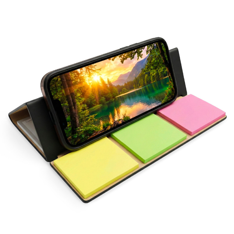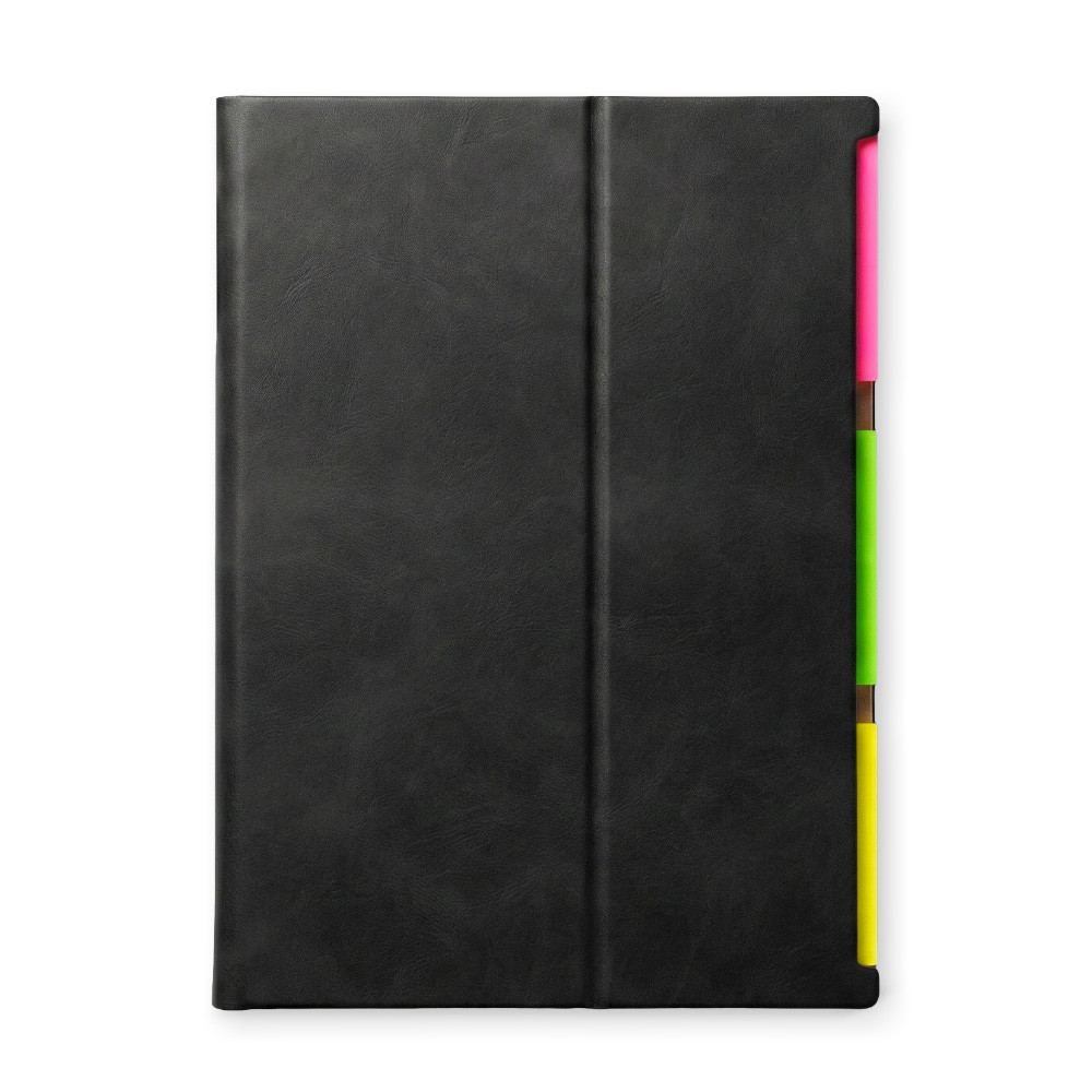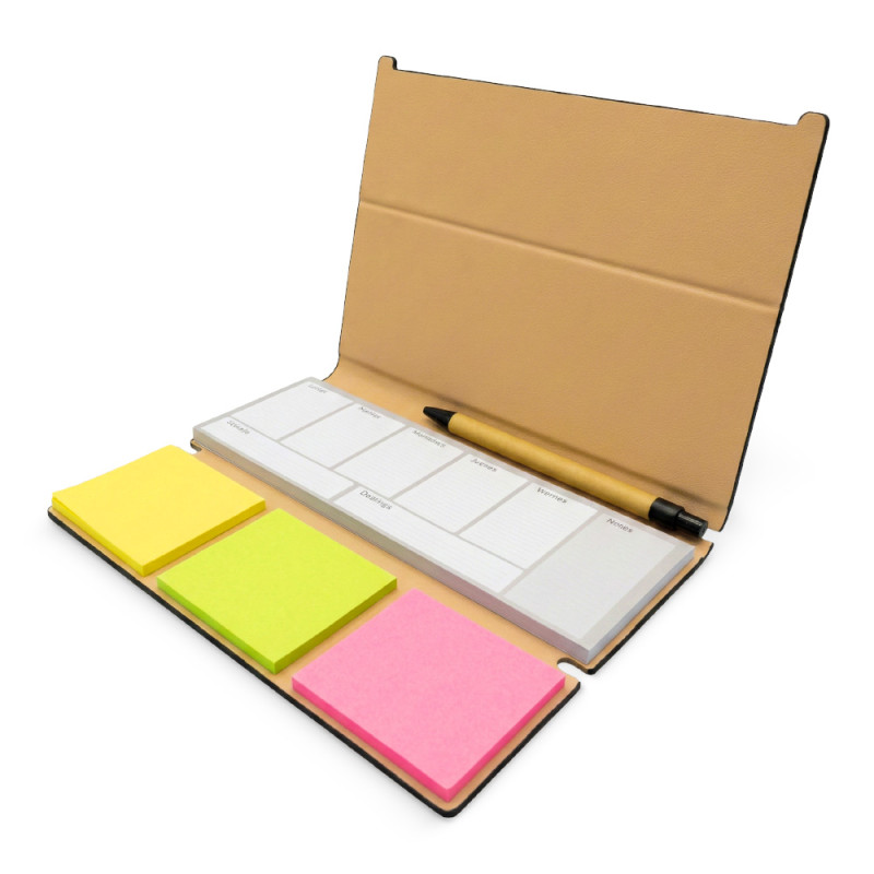 Planeador con tapa en poliuretano, 50 hojas. Incluye bolígrafo y juego de 3 stickies de colores.