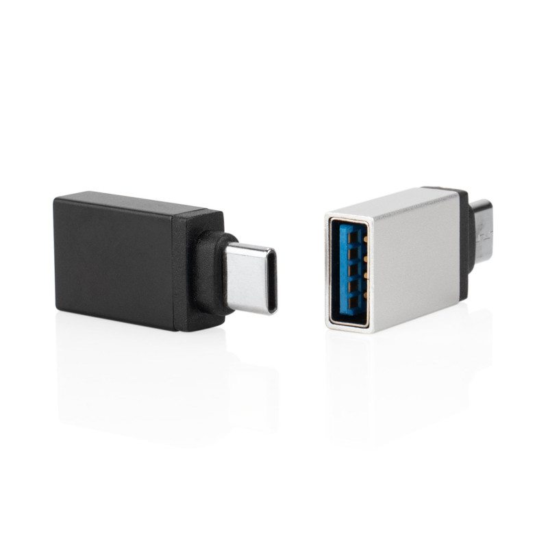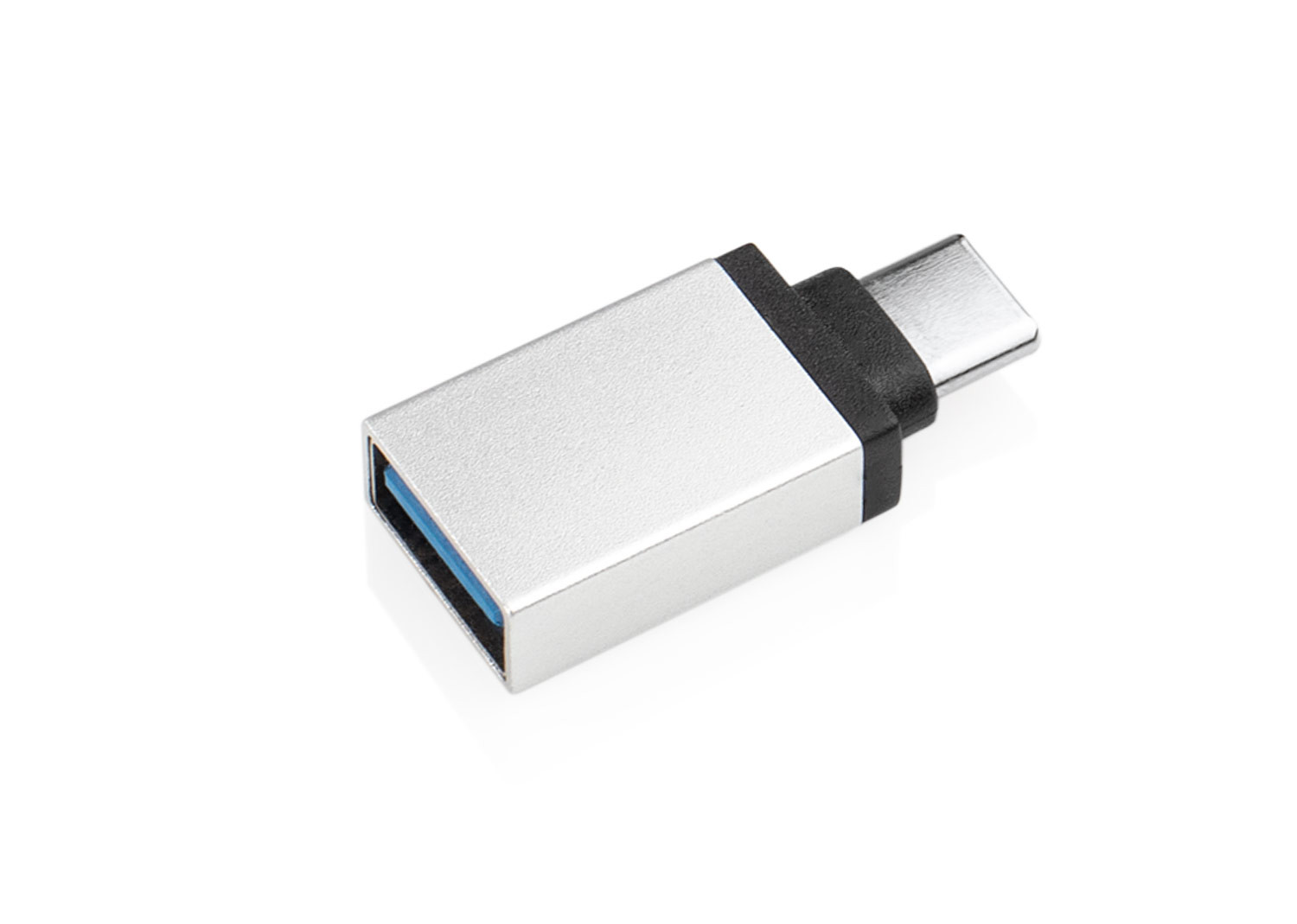 Adaptador compacto que convierte un cable USB-A en conector tipo C, permitiendo conectar dispositivos con entrada USB-C a través de cables tradicionales. Ideal para cargar, transferir datos o conectar periféricos, su diseño portátil y versátil lo hace compatible con laptops, tablets y smartphones con puerto tipo C.