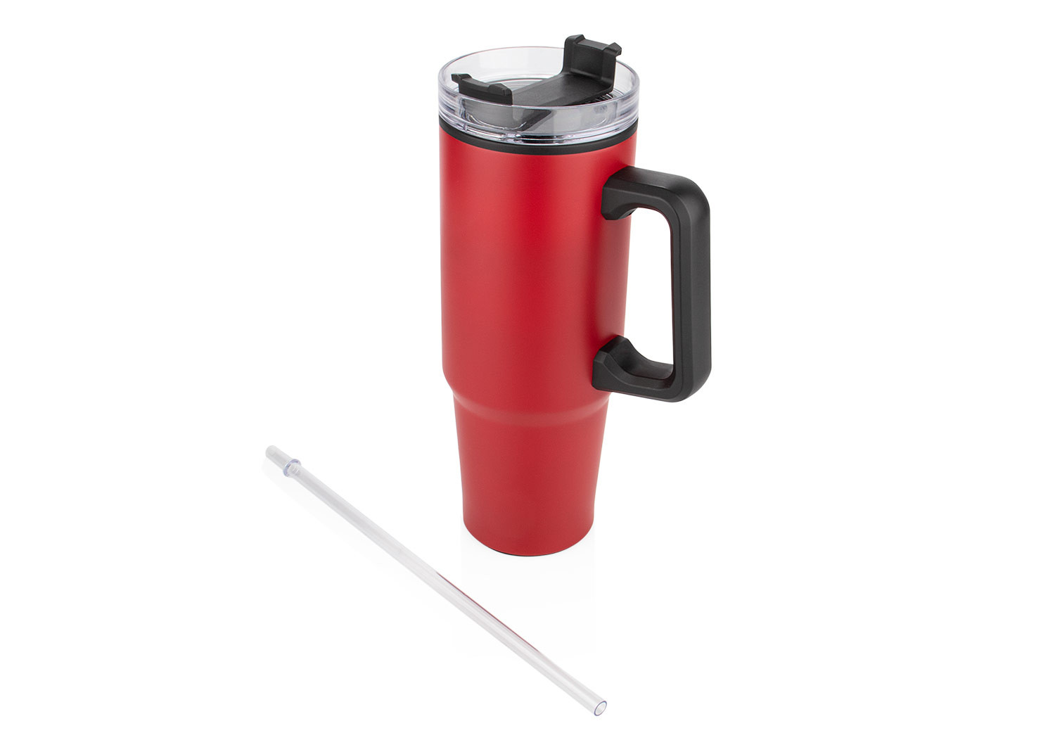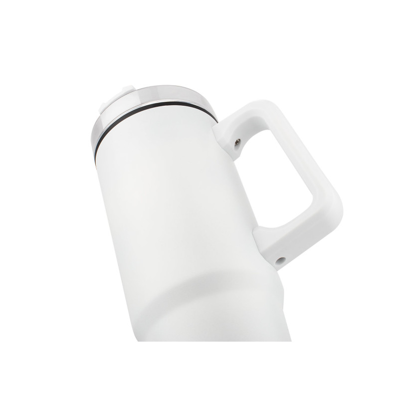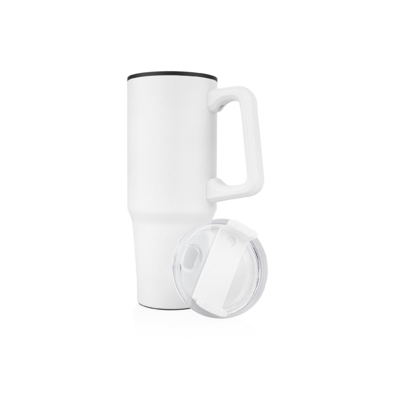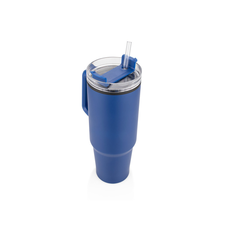 Botella con interior en PP y exterior en acero inoxidable, diseñado para mantener tus bebidas a la temperatura ideal. Incluye asa ergonómica, pitillo (26,4) reutilizable y una tapa con cierre giratorio que incorpora una palanca deslizante para abrir paso al pitillo o cubrirlo por completo. Práctico, resistente y perfecto para llevar tus bebidas a cualquier lugar. Capacidad: 850 ml / 29 Oz.