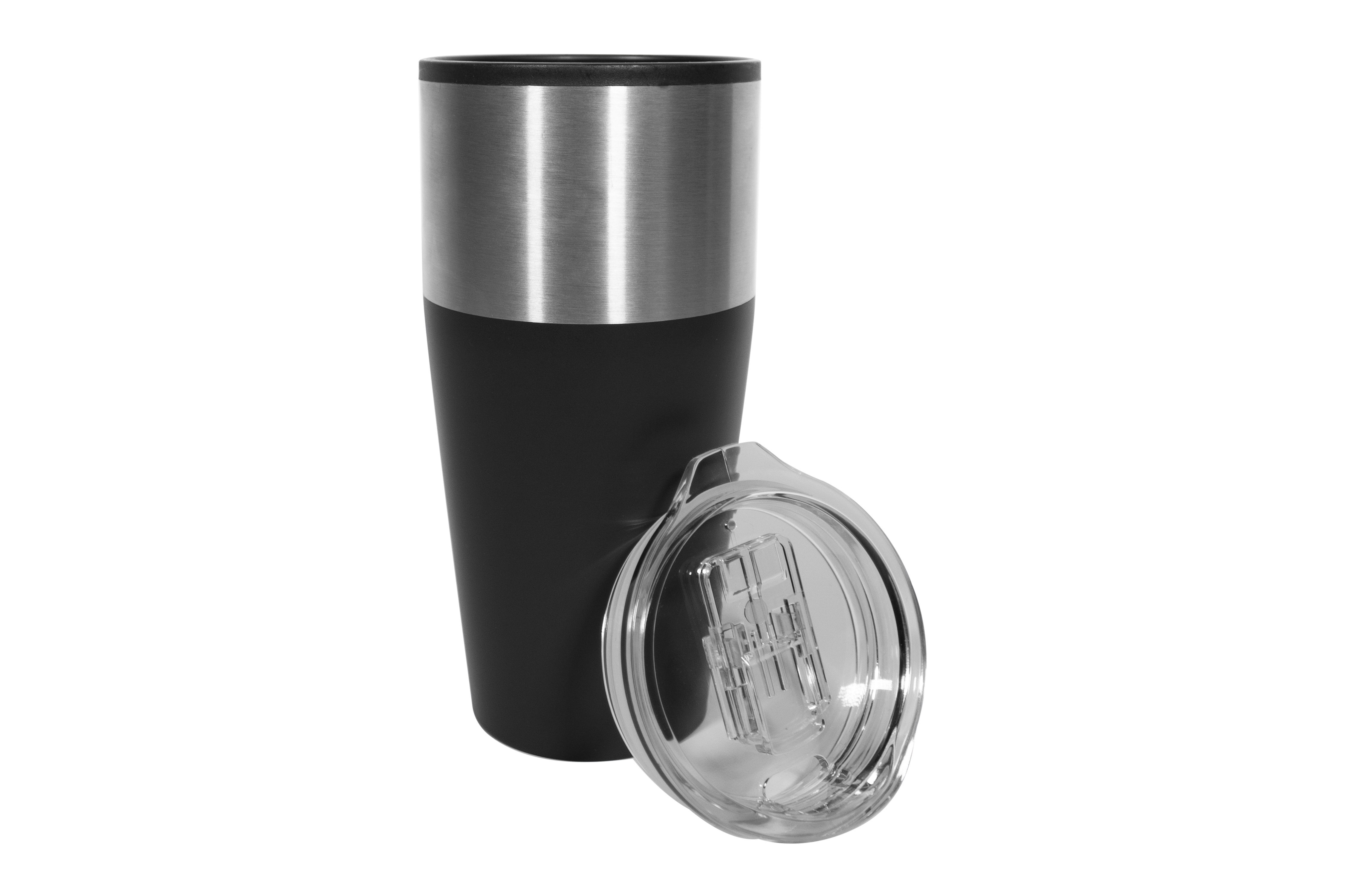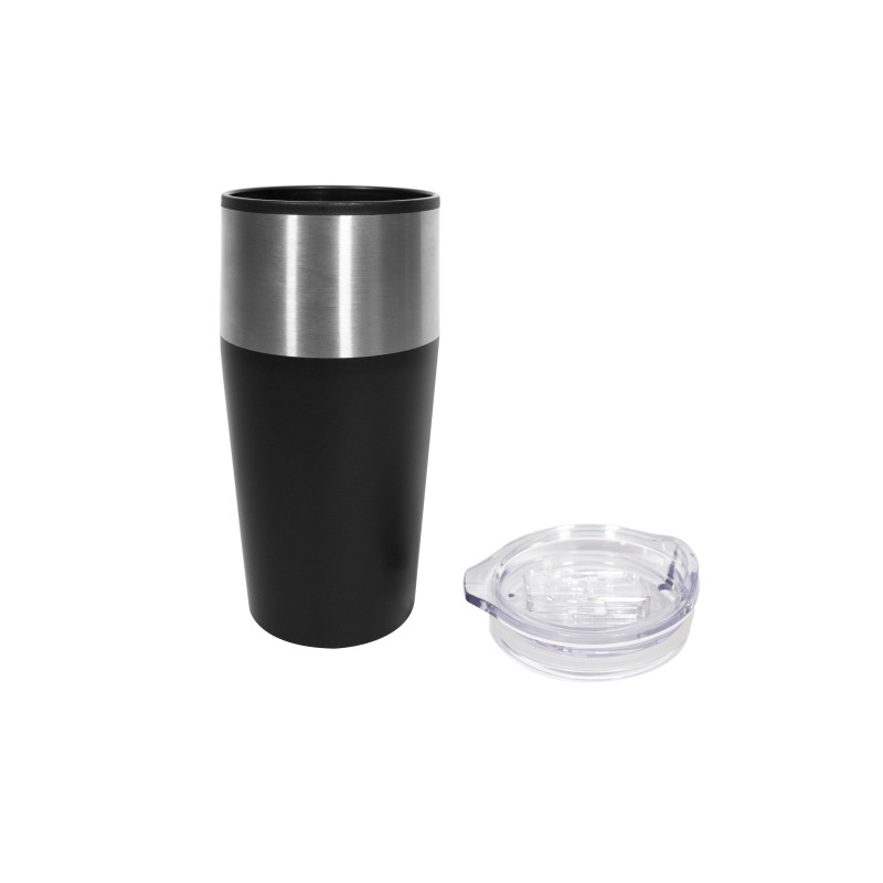 Capacidad 600 ml. Plástico y metalico. Interior plástico y exterior de metal con detalles de color. Tapa transparente que cierra y se abre deslizandose.