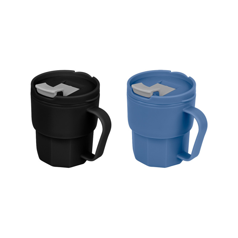 Cuerpo y tapa de plastico con cierre a presion y valvula de seguridad. Capacidad de 11 oz.
