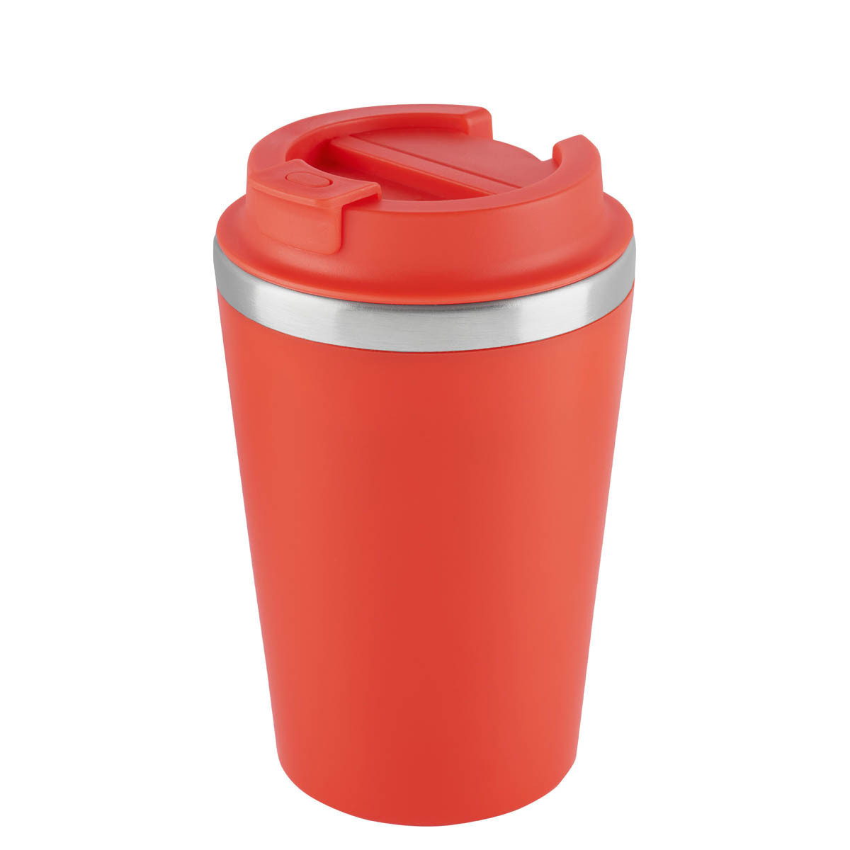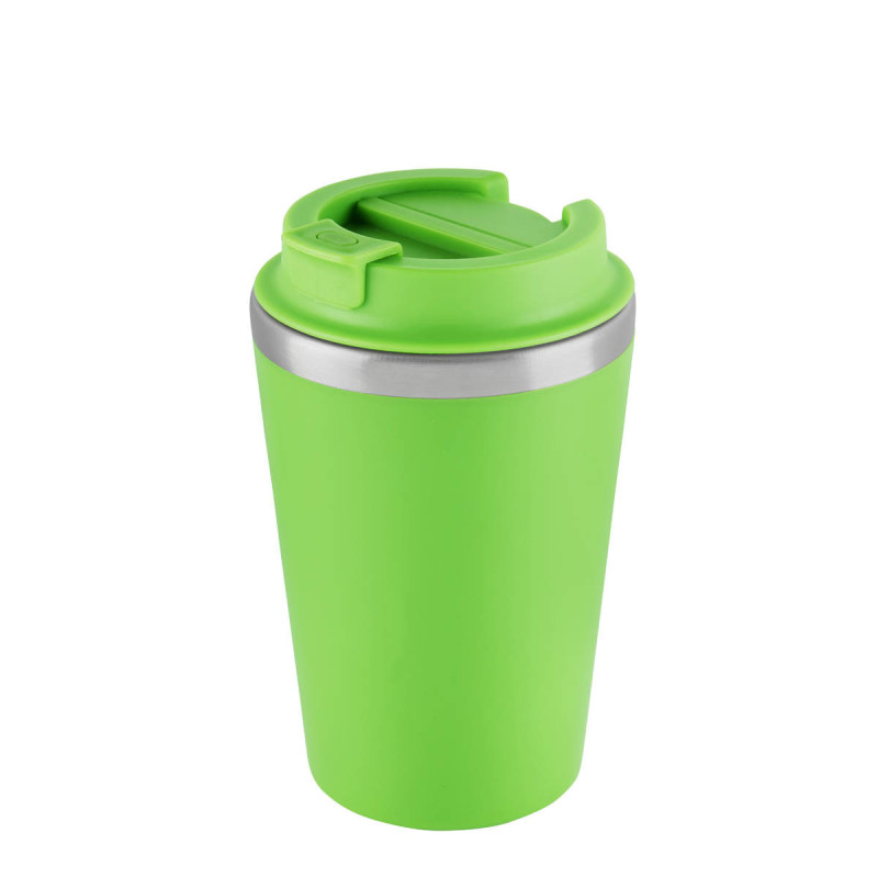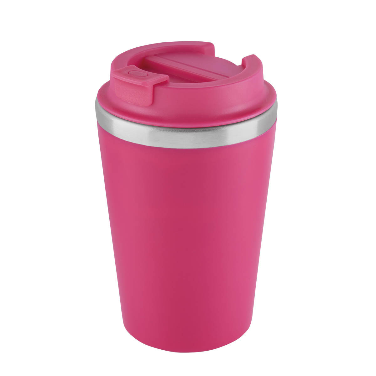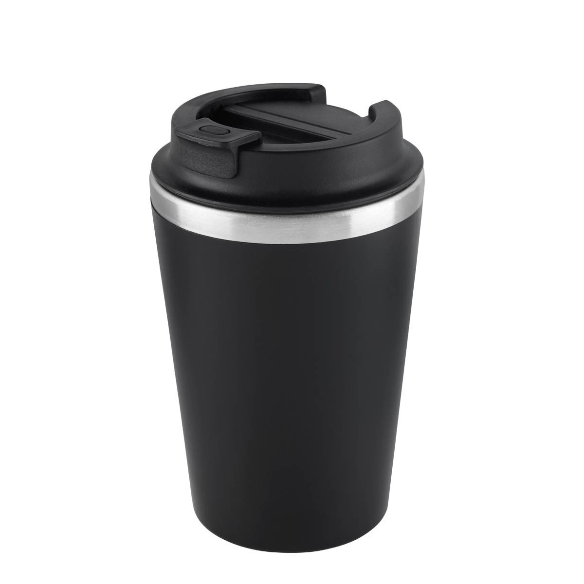 Termo doble pared. Pared interna de acero inoxidable y externa de plastico. Tapa con sistema de rosca que garantiza un cierre hermetico. Sobretapa con sistema push que previene derrames. Su elegante detalle metalico, rompe con la monocromia y anade un toque de distincion. Capacidad de 12 Oz. Base de 7 cm de diametro. Incluye caja individual.