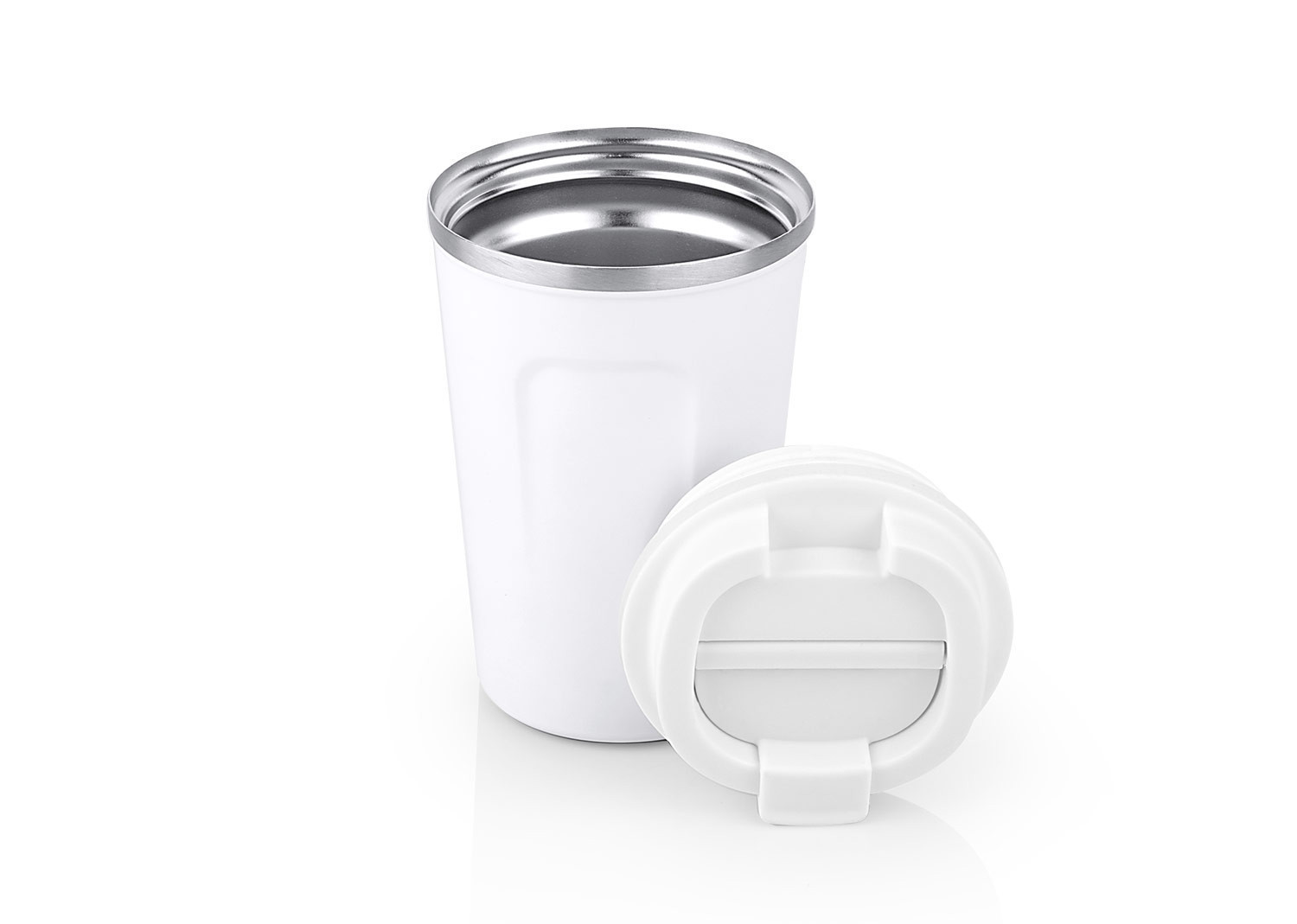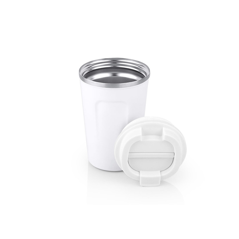 Mug doble pared en acero inoxidable, con aislamento termico Vacum, Base antideslizante. Tapa rosca de seguridad y 500 ml / 17 Oz
