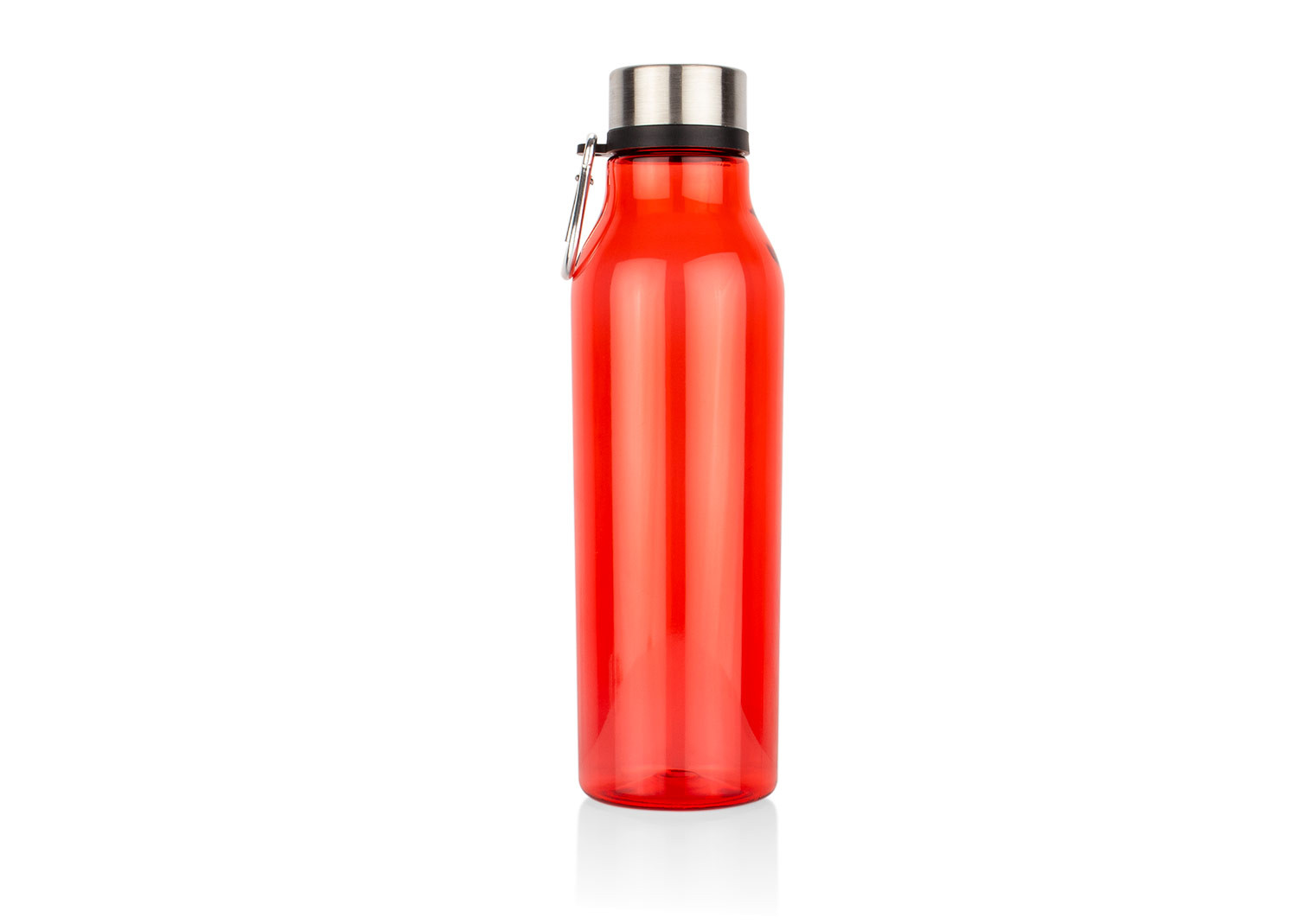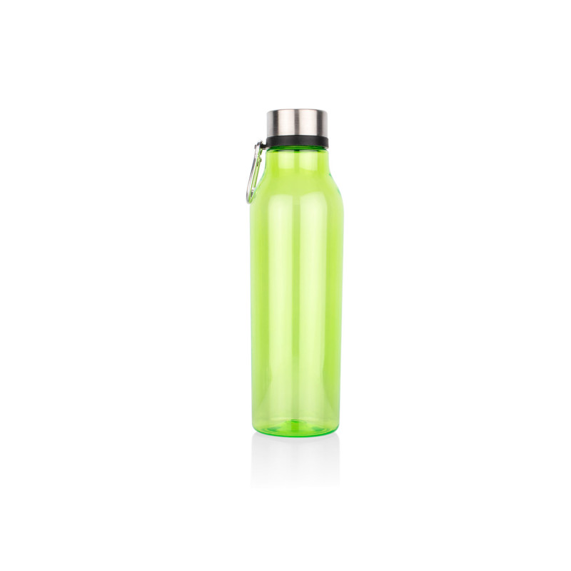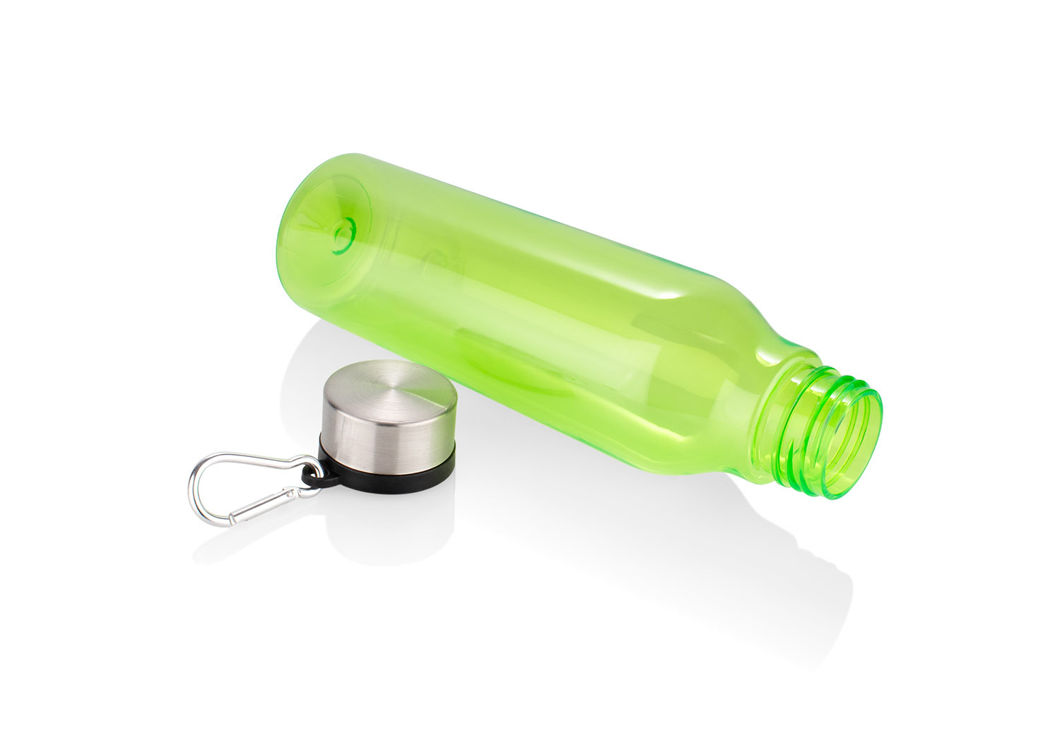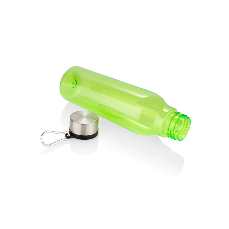 Botella deportiva con diseño compacto; la hace ideal para llevar al gimnasio, la oficina o actividades al aire libre. Cuenta con tapa de cierre giratorio que garantiza un sellado seguro, y un gancho carabinero integrado que permite sujetarla fácilmente a mochilas, bolsos o cinturones. Capacidad: 600 ml / 20 Oz.