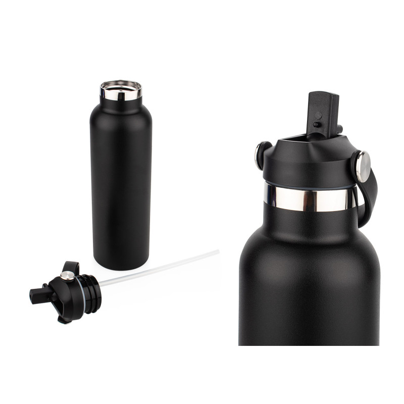 Botella térmica con interior en acero inoxidable 304 y exterior en 201, ideal para mantener la temperatura de tus bebidas. Mantiene las bebidas frías por 24 horas y las bebidas calientes por 12 horas. Incluye pitillo integrado y una boquilla que puede sacarse o guardarse según preferencia. Su tapa cuenta con cierre giratorio y un asa resistente para facilitar el transporte. Funcional, moderna y perfecta para uso diario o actividades al aire libre. Capacidad: 650 ml / 22 Oz.