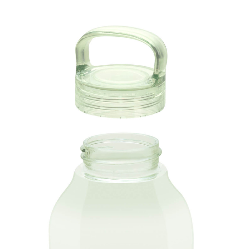 Tapa con asa integrada. Su diseño ergonómico asegura un fácil manejo, mientras que la tapa de rosca previene derrames, manteniendo tus bebidas seguras. Perfecto para llevar al gimnasio, al trabajo o durante actividades al aire libre. Incluye caja individual.