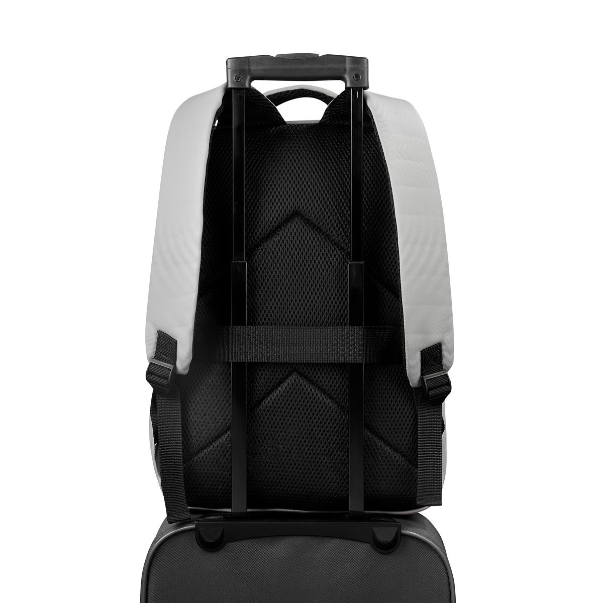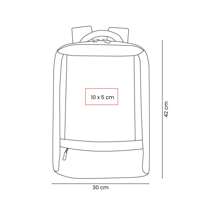 Bolsa principal con cierre y compartimento interior para laptop de hasta 15", en su interior dispone de un organizador para accesorios para objetos pequeños. Incluye bolsillo frontal con cierre. En la parte posterior cuenta con tirantes para hombro ajustables, respaldo acolchado y banda que facilita su transporte en trolley.