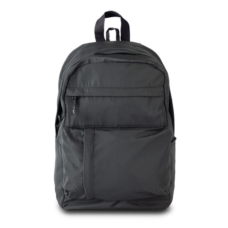 Morral en poliéster, con bolsillo para portátil de hasta 15”. 2 bolsillos frontales con cremallera. Bolsillo lateral.
