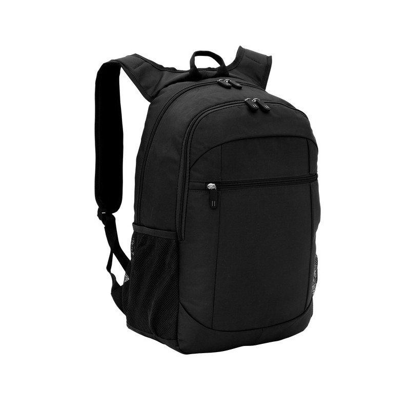 Morral portanotebook de hasta 16 pulgadas. 2 compartimentos con doble cierre. Amplio compartimento principal posterior con bolsillos acolchados portanotebook y portatablet. Compartimento frontal, interior con bolsillos organizadores y 1 bolsillo frontal con cierre horizontal. 2 Bolsillos laterales de red elastizados porta botellas y accesorios. Asa superior, correas ajustables reforzadas y acolchadas, unidas en su parte superior para mayor resistencia, protección y comodidad. Espalda acolchada. Cierres metálicos con deslizadores de goma con detalles de color.