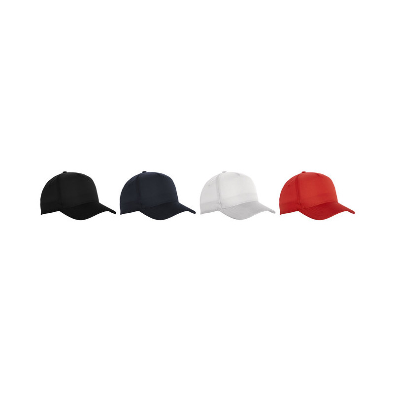 Gorra con visera. 5 paneles. Orificios de ventilación bordados. Botón forrado. Banda absorbente de poliéster. Cierre ajustable de velcro.