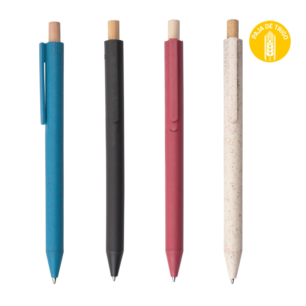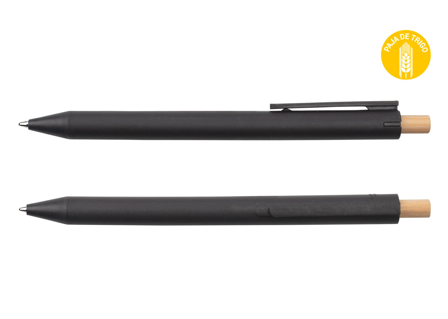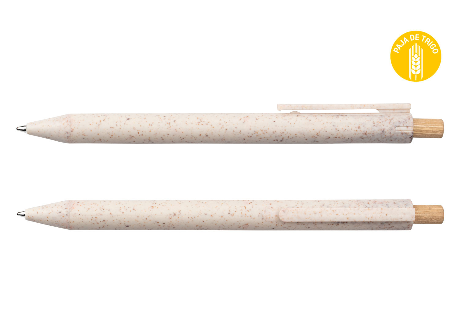 Bolígrafo con clip hecho con paja de trigo, sistema de apertura con botón retráctil de bambú.