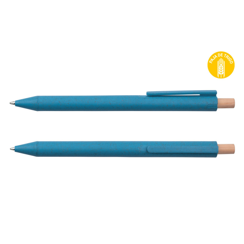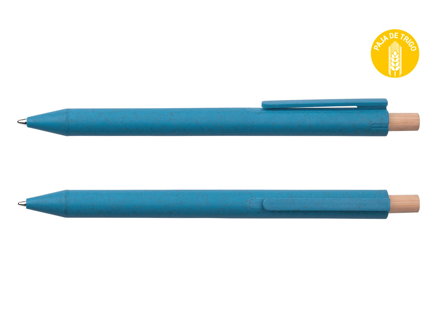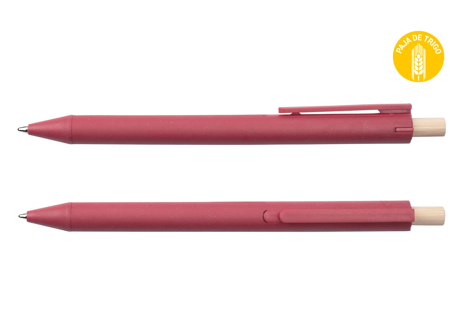 Bolígrafo con clip hecho con paja de trigo, sistema de apertura con botón retráctil de bambú.