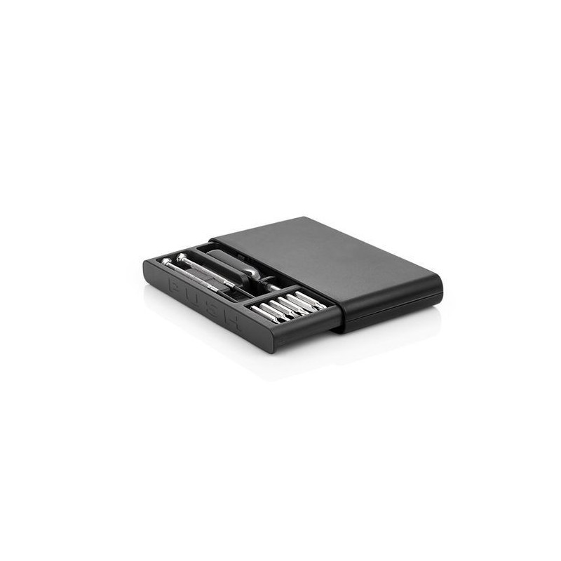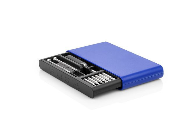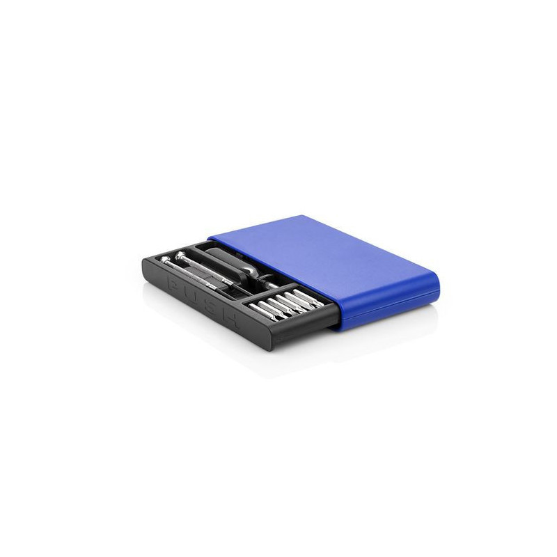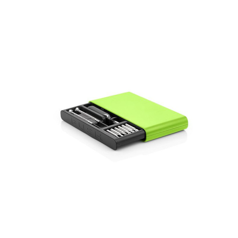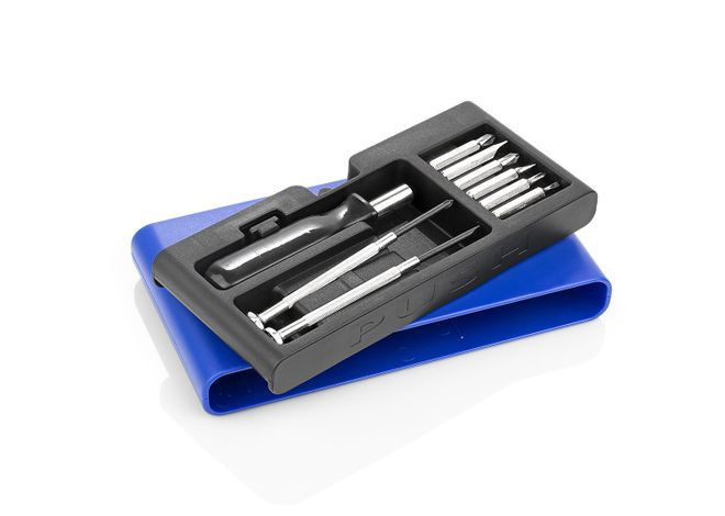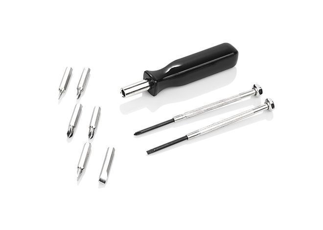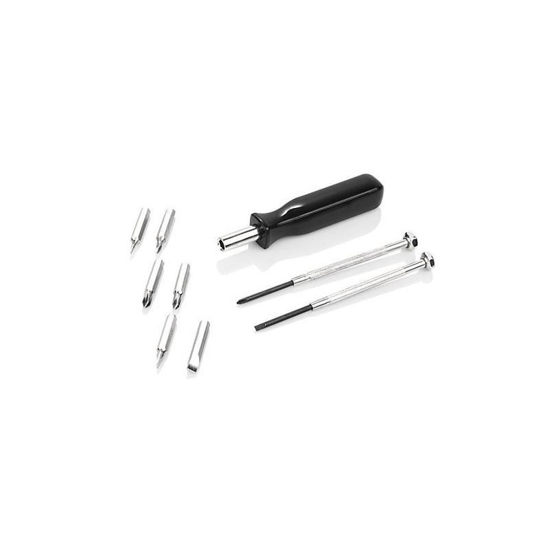 Set de herramientas que incluye: Destornilladores con puntas tipo Phillips y tipo pala, 1 extensor, puntas de destornilladores de precisión 3 tipo Phillips y 3 tipo pala.