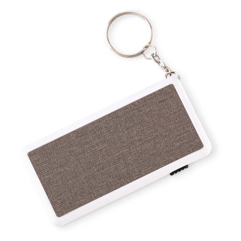 Llavero plástico con cuatro puntas de destornilladores, destapador y linterna.