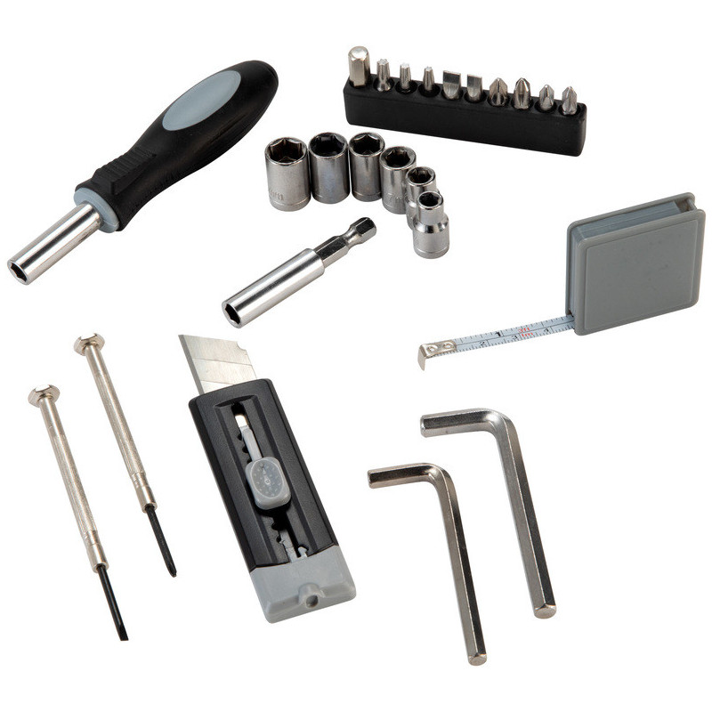 Tu aliada ideal para cualquier lugar y momento. Linterna con set de herramientas. Batería de litio recargable. Linterna desmontable con base imantada. El set incluye: 2 llaves bristol hexagonales de 4 y 6 mm., 1 bisturí de hoja ancha, 1 cinta métrica de 1m., 2 destornilladores de precisión (punta plana y estrella), 1 mango de destornillador, 1 barra de extensión, 1 conector, 9 puntas de destornillador (2 planas, 3 estrella y 3 torx), 6 llaves copa (5 a 10 mm.) y 1 cable de carga color blanco.