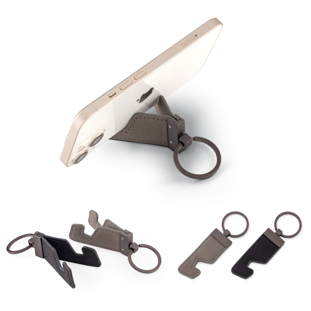 Llavero en poliuretano. Con soporte para celular. Empaque caja individual.