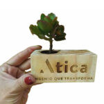 Kit de siembra con una suculenta en una matera portalápiz de madera marcado con su logo. Un eco regalo diferente que visibiliza tu marca llamativamente. La suculenta en kit de siembra es una planta ideal para colocar en el escritorio. Por esta razón la sugerimos si se trata de un eco regalo para cuidar en una oficina. La matera tiene un agujero para colocar el lapicero. De igual forma, al lado se encuentra la planta suculenta. NO INLCUYE LAPIZ NI BOLIGRAFO