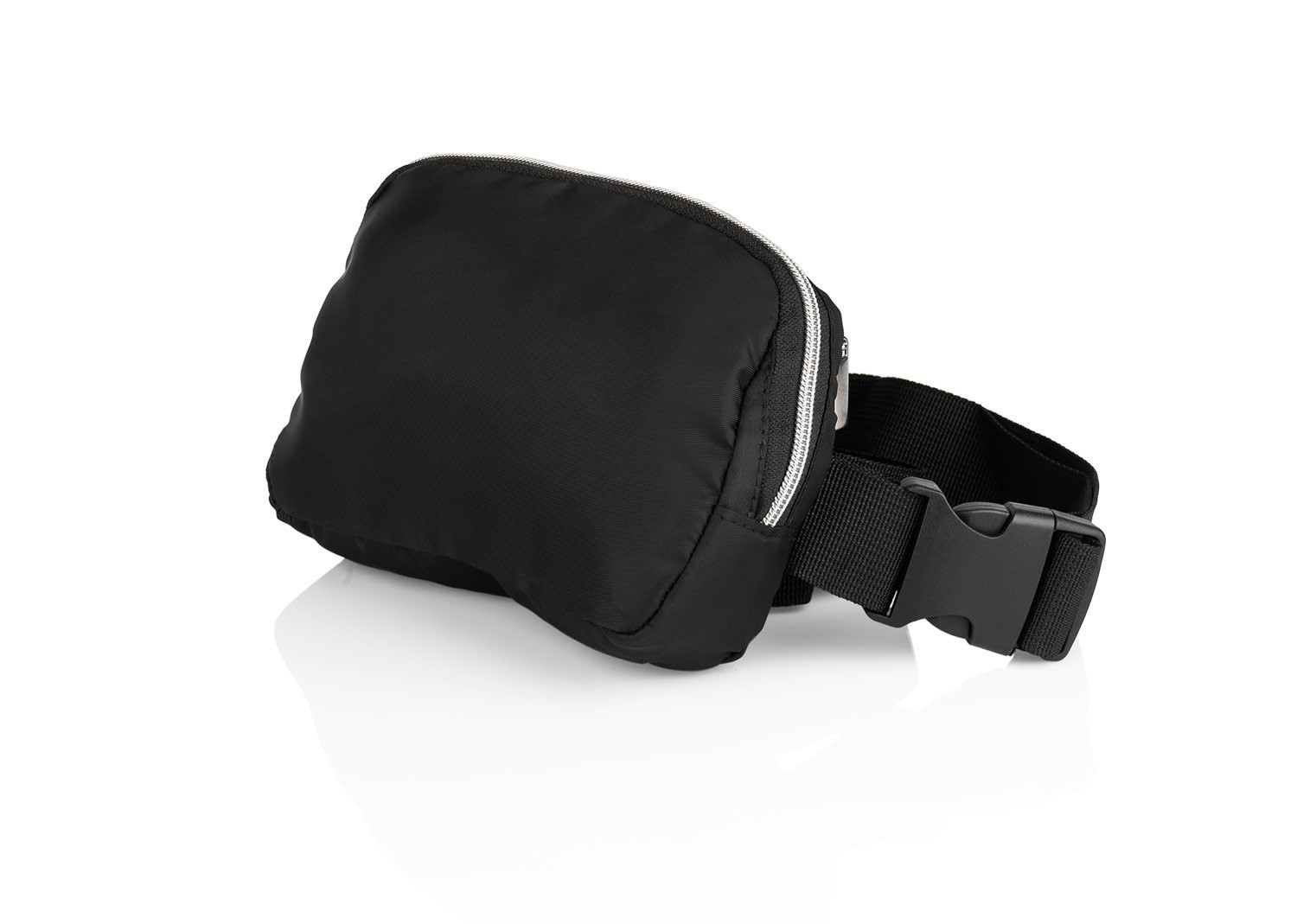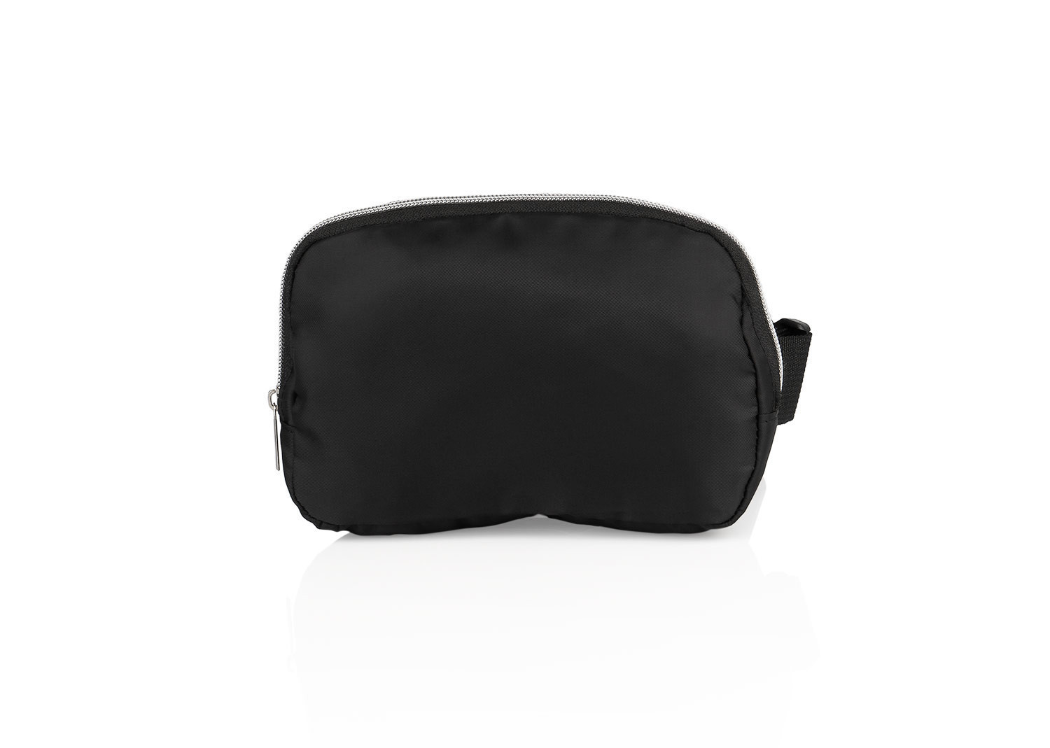 Manos libres cruzado con dos bolsillos con cremallera, correa ajustable con broche de hebilla y bolsillos internos para ordenar más fácilmente los productos.