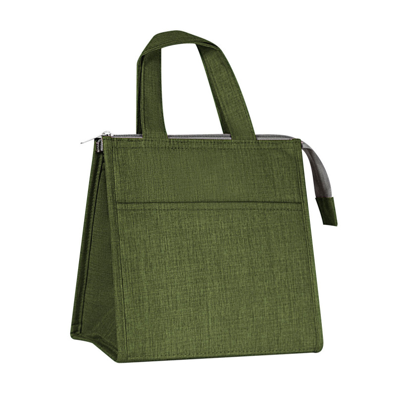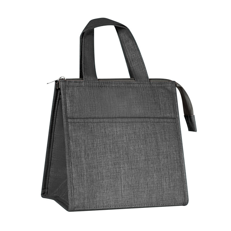 Lonchera de poliéster e interior metalizado, bolsillo frontal para organizar utensilios o pequeños accesorios. Bolsa principal con cierre y asa de mano que facilita su portabilidad. Capacidad para 6 latas.
