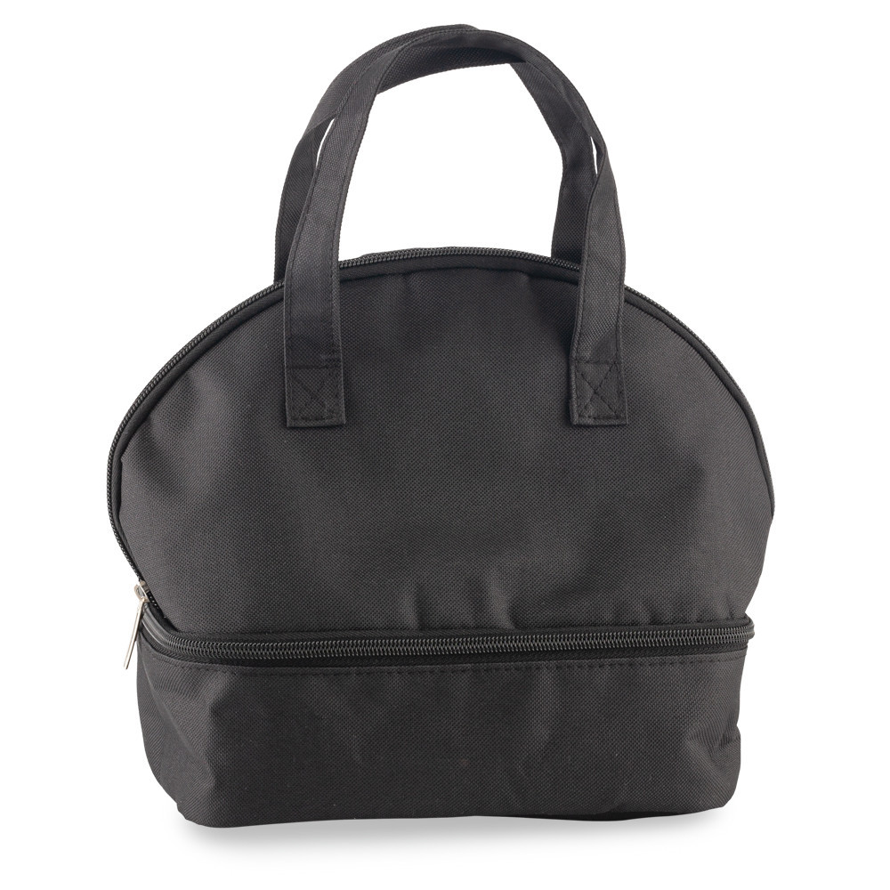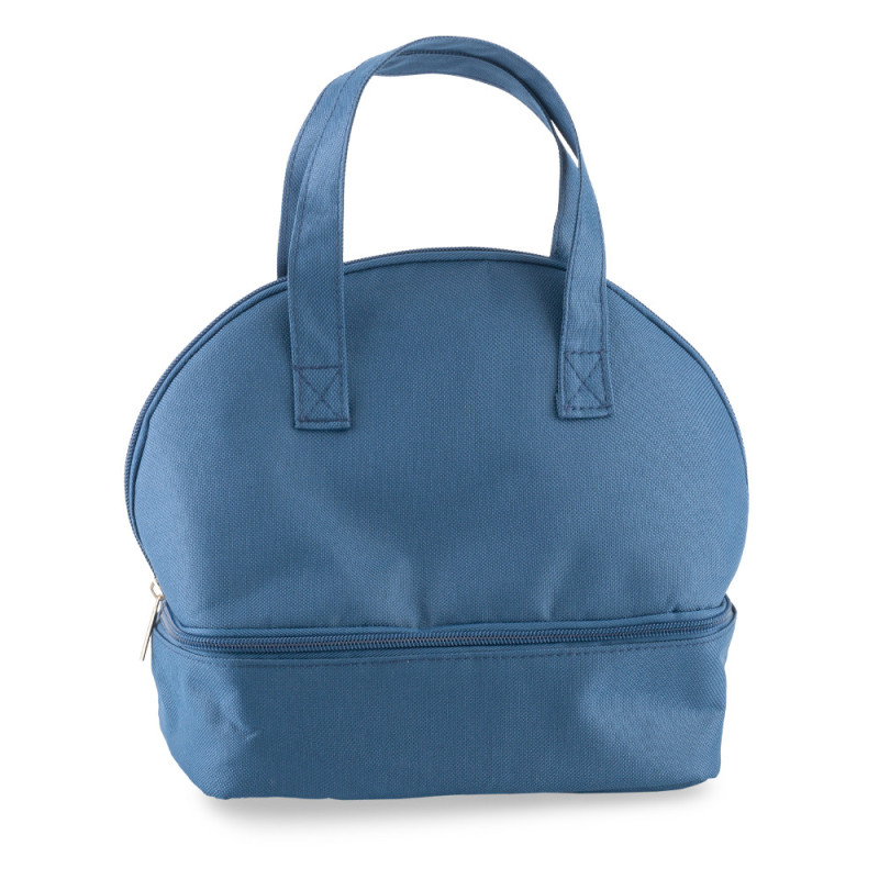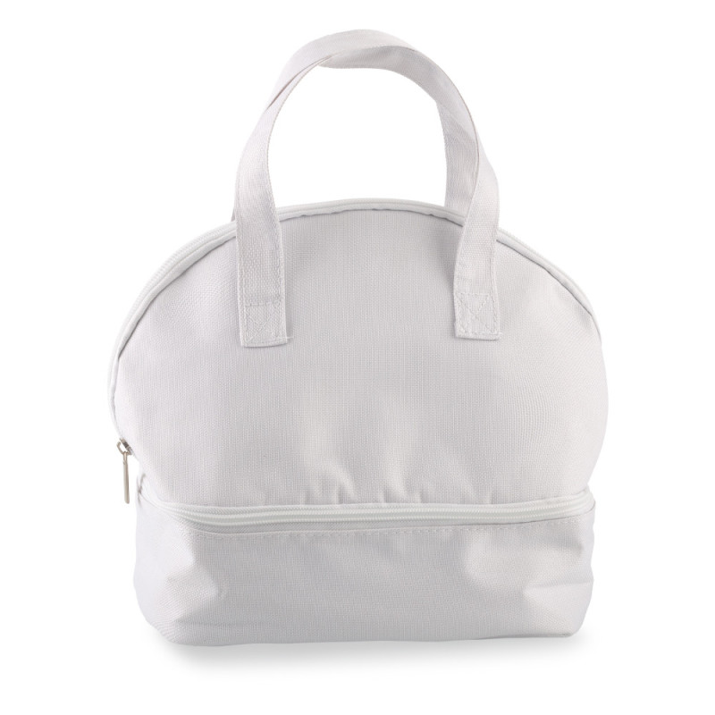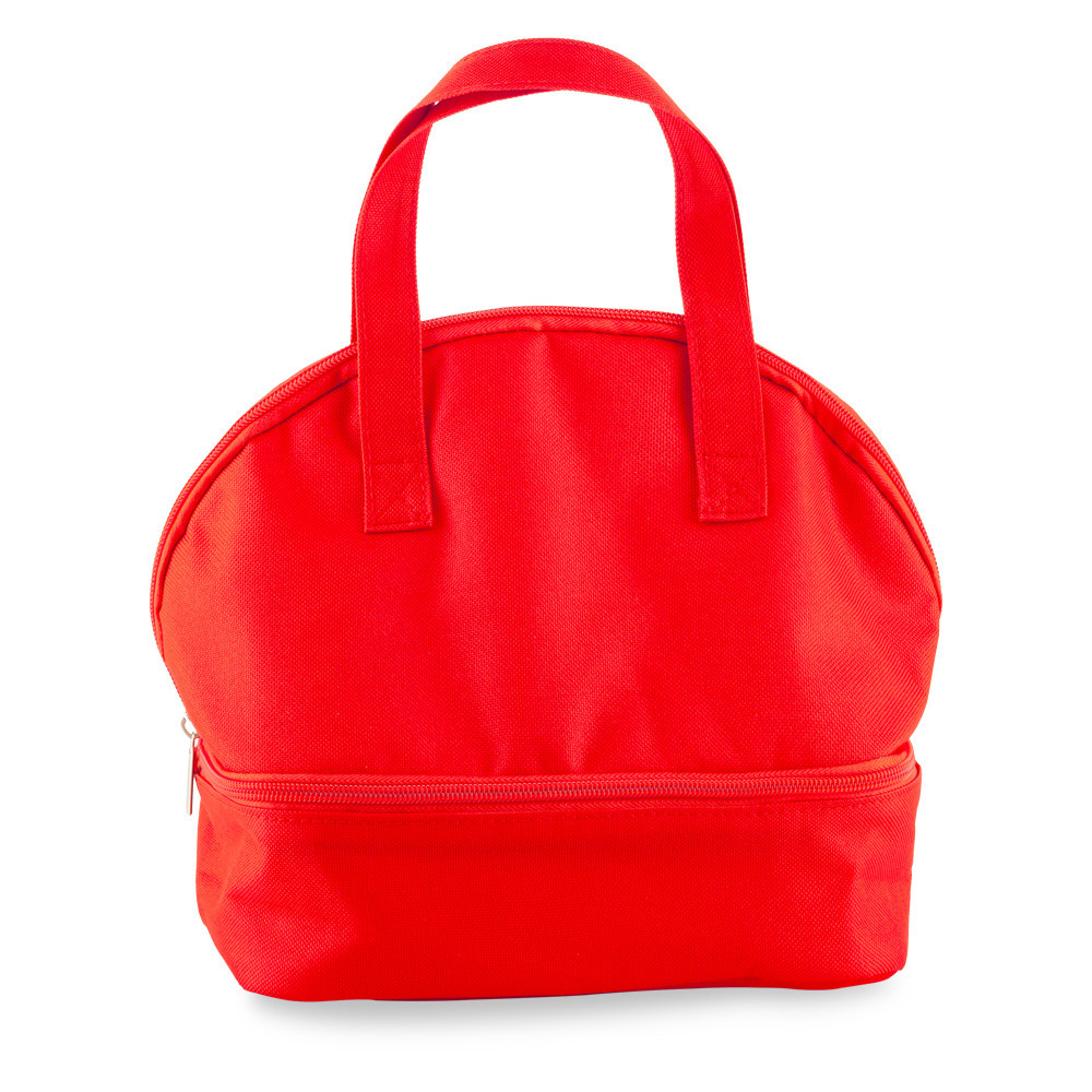 Nevera en poliéster. Con interior en aluminio y dos compartimientos con cremallera.