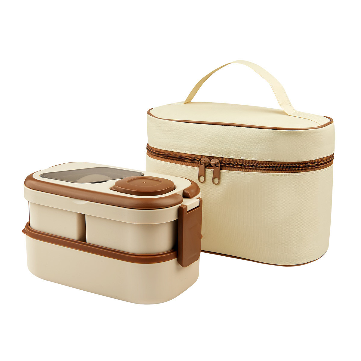 Set de lonchera y portaviandas. Incluye contenedor de alimentos con triple compartimento, capacidad total de 1.6 litros. Su tapa cuenta con asas plegables que facilitan su transporte, ademas, una practica cuchara tenedor y un mini recipiente para aderezos. Su lonchera es el complemento perfecto, fabricada en poliester con interior de aluminio. El compartimento principal, cuenta con un cierre seguro y un bolsillo interior de malla para guardar objetos pequenos. Apto para microondas o lavavajillas. Capacidad para 6 latas.