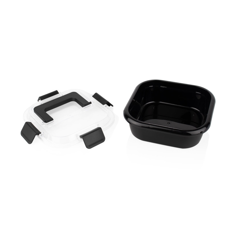 Fabricada en material de paja de trigo, con tapa de PP transparente que permite visualizar el contenido. Su diseño cuadrado con bordes redondeados incluye un asa integrada para facilitar el transporte, además de cierres laterales que aseguran un ajuste firme. Una opción práctica y ecológica para llevar tus comidas de forma cómoda y organizada.