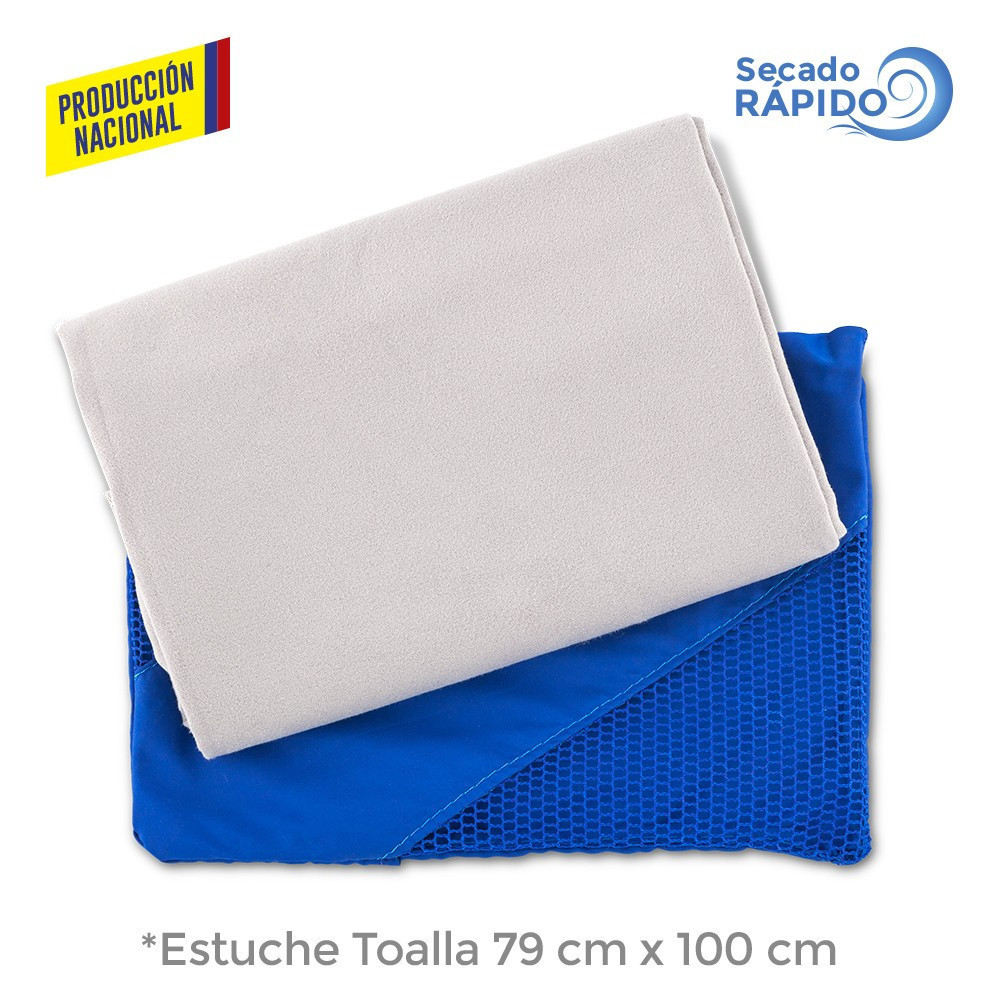Toalla en microfibra especial 87.92% poliéster, 12.08% poliamida. Secado rápido: 4 veces más rápido que una toalla normal. Espacio mínimo: una sexta parte del peso de una toalla convencional. Máxima absorción con un material ligero. Antibacterial. Ideal p