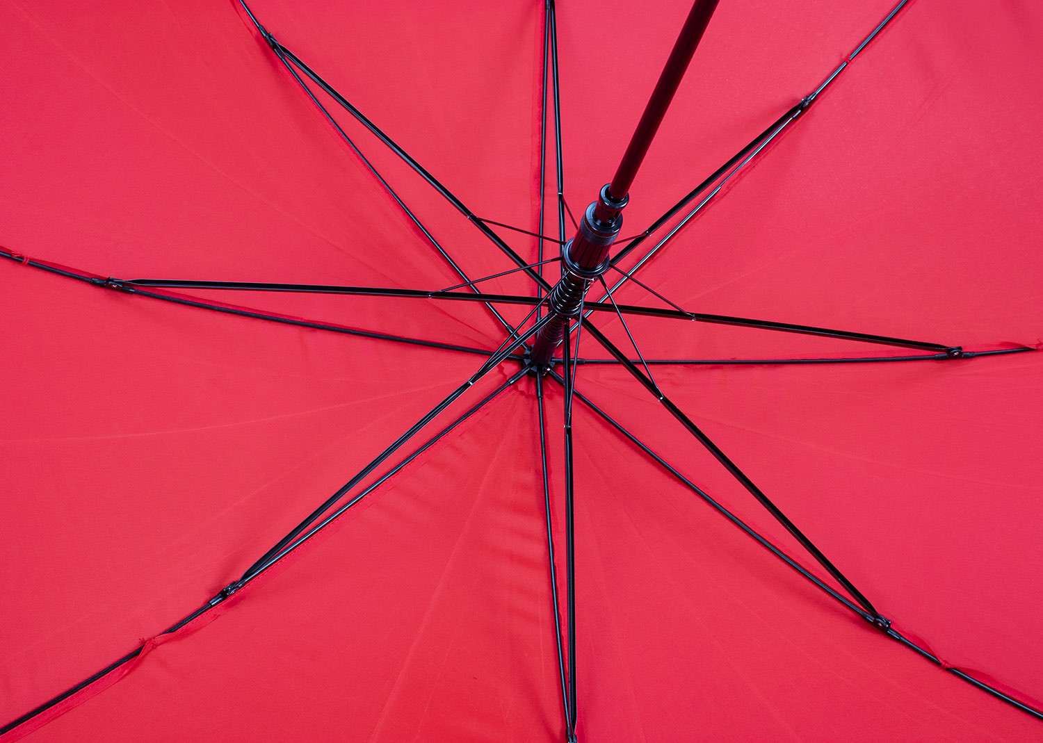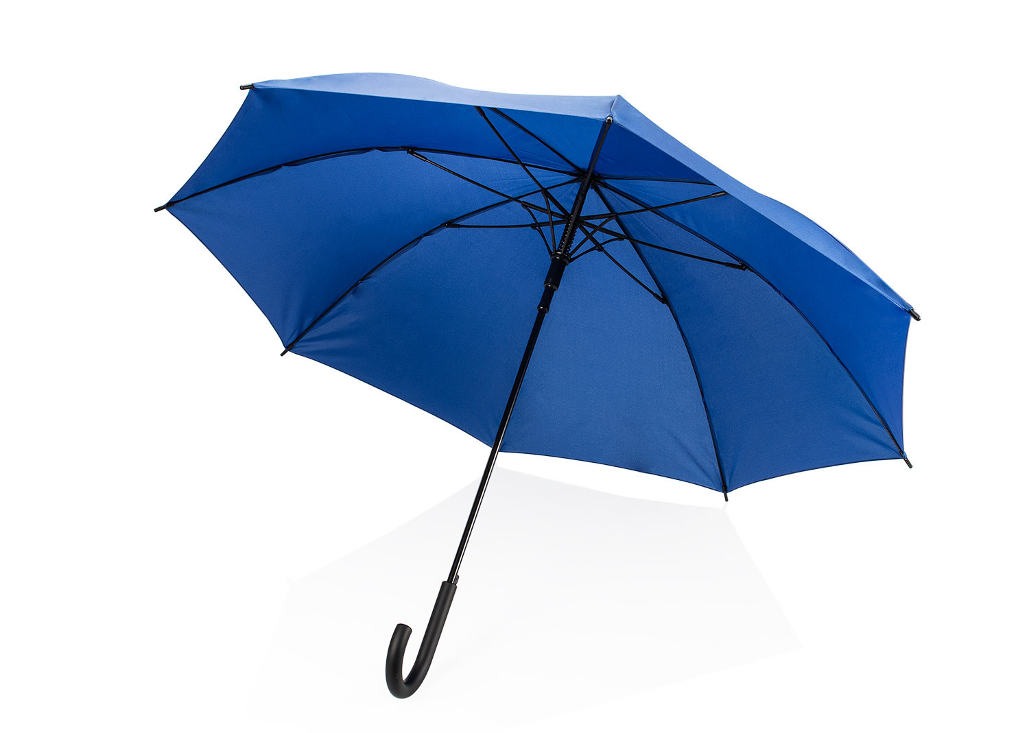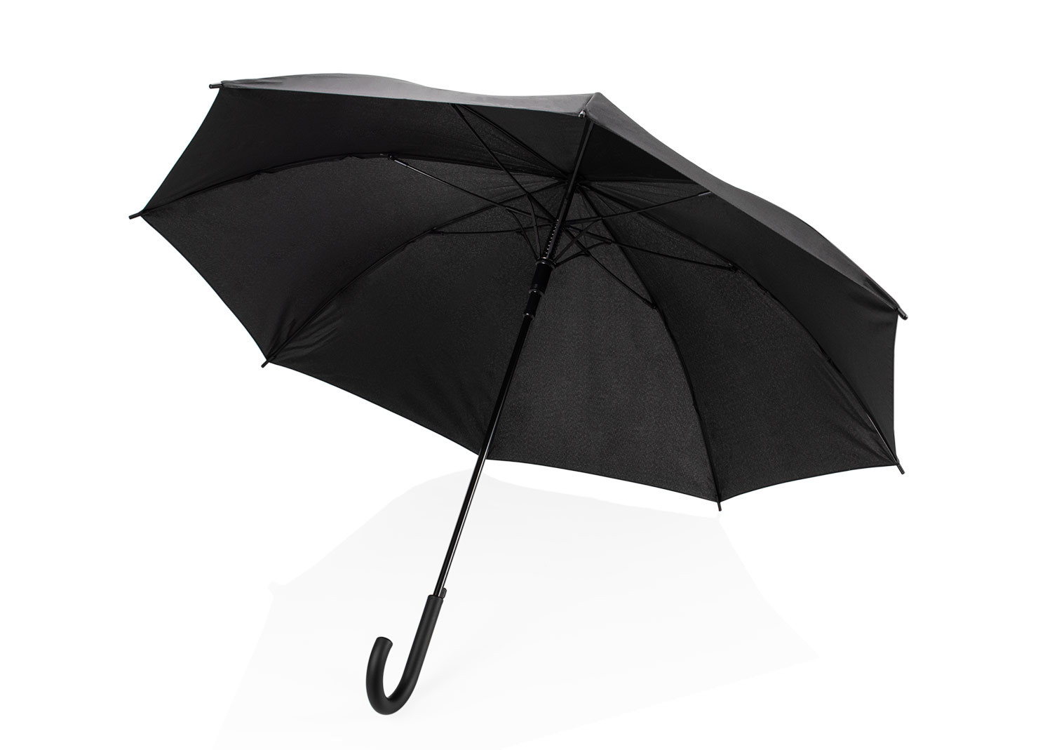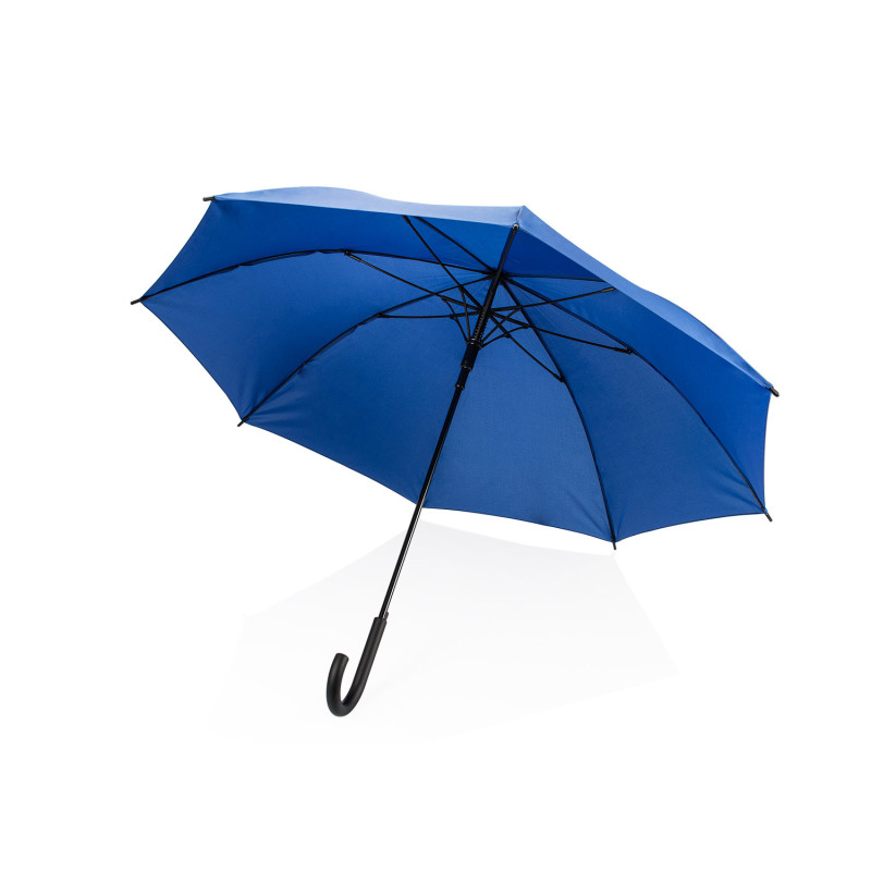 Paraguas tipo recto de 23" con apertura automática. Estructura completa de fibra de vidrio, con eje central de color negro y varillas resistentes. Diseño windproof (resistente al viento) que proporciona mayor estabilidad en condiciones climáticas adversas. Mango curvo de plástico PP con acabado tipo goma (soft touch), en el mismo color de la tela. Puntas y remate superior plásticos.
