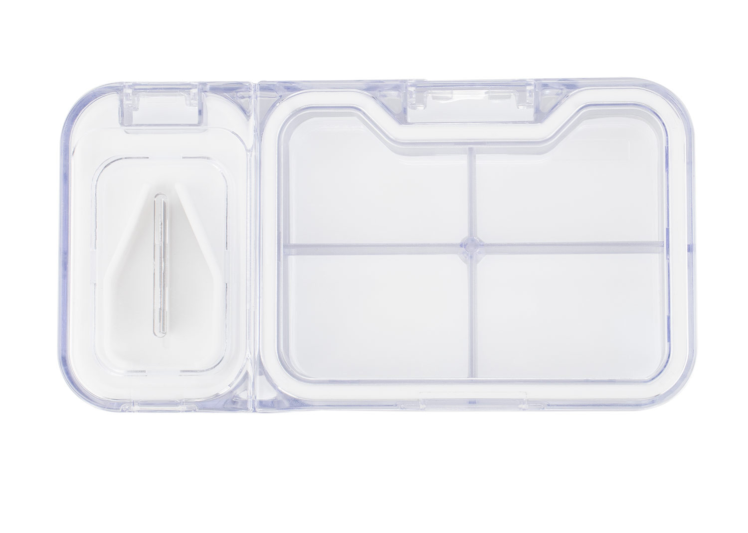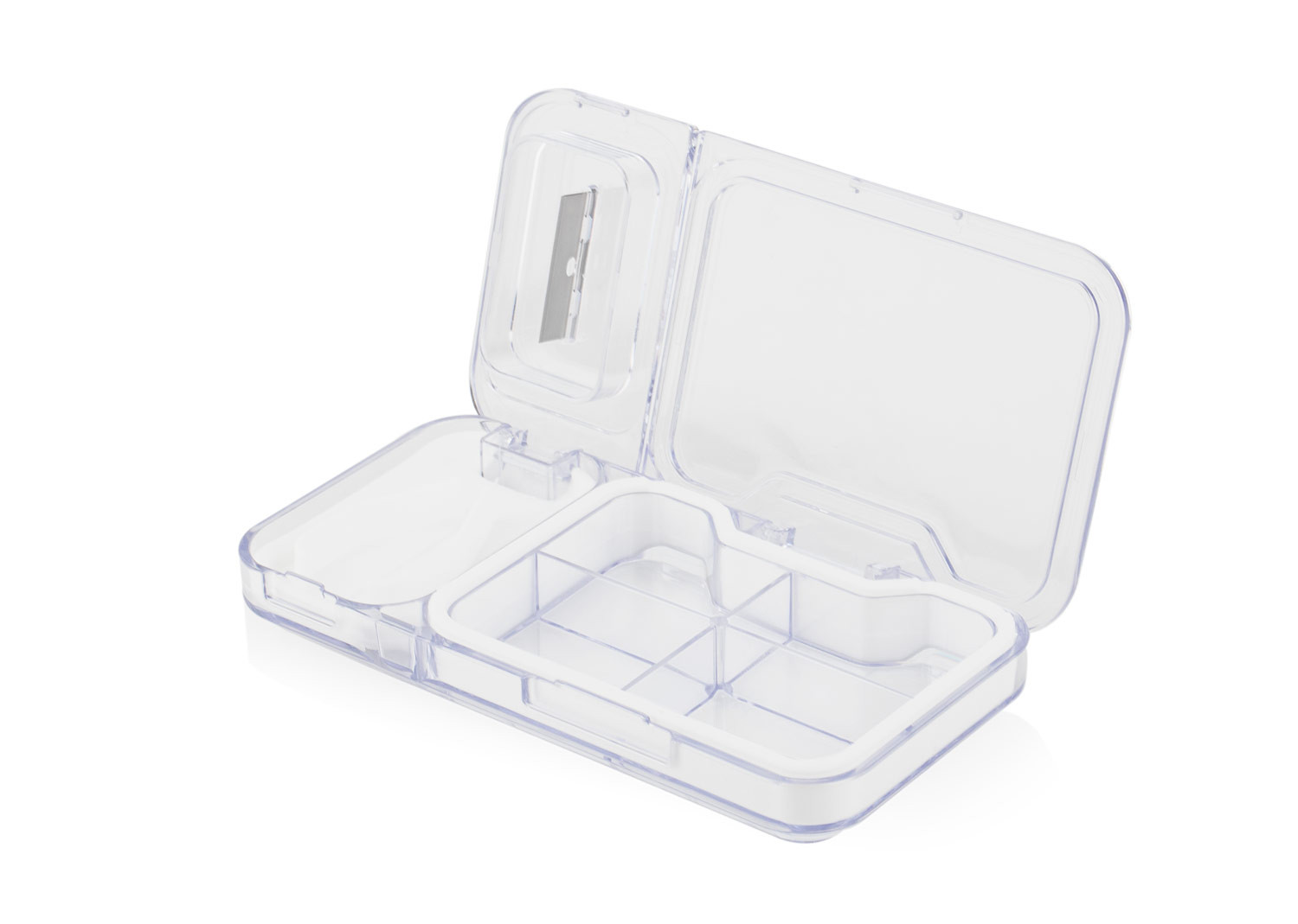 Pastillero elaborado en PP con diseño práctico que incluye cuatro compartimientos de almacenamiento (8,2 X 6,1) y un cortador de píldoras integrado (3,7 X 6,1). Ambos espacios cuentan con cierre a presión, asegurando un manejo seguro y organizado. Ideal para mantener las dosis diarias ordenadas y facilitar el consumo de medicamentos en cualquier momento.
