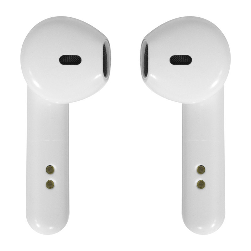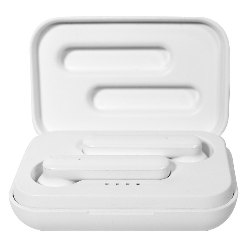 Auriculares bluetooth, se conectan al celular de forma inalámbrica. Los auriculares cuentan con función touch en cada costado de los audifonos (izquierdo y derecho) para funciones de avance, retroceso, reproducción y pausar musica. Así como también para las funciones de tomar y finalizar una llamada. Estuche que permite cargar la batería de los auriculares. Indicador de batería. Duración de la carga en inactividad: 200 horas. Tiempo de reproduccion autónomo 3 horas aprox. Batería de litio. Cable de carga Entrada: 5V/1.5A Base de Carga: 300mAh Auriculares: 30mAh V5.0 Rango de alcance 15 metros