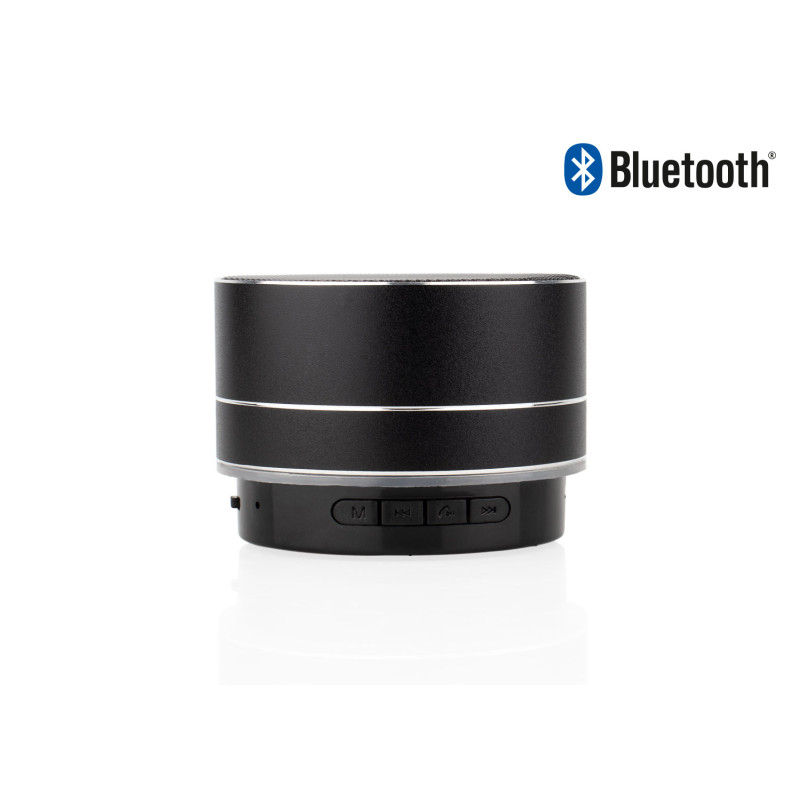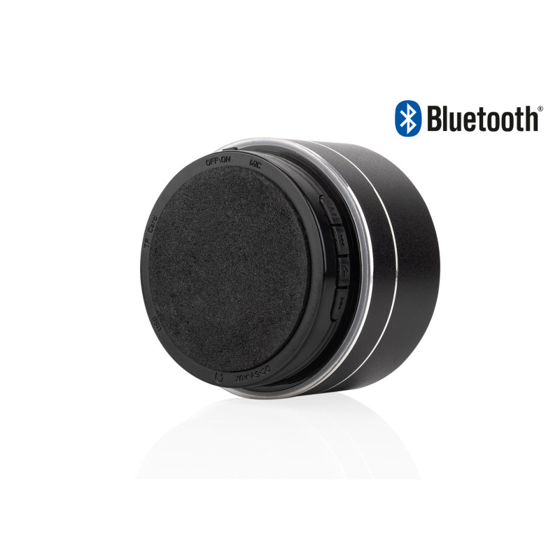 Altavoz Bluetooth compacto fabricado en aluminio y ABS, con potencia de 3W y conectividad inalámbrica V4.2+EDR que garantiza una transmisión estable hasta a 10 metros. Cuenta con batería de 300 mAh, ranura para tarjeta TF, puerto USB, entrada AUX y función manos libres gracias a su micrófono incorporado. Incluye cable de carga Tipo-C y manual de usuario. Su diseño portátil y moderno lo convierte en el compañero ideal para disfrutar música en cualquier momento.