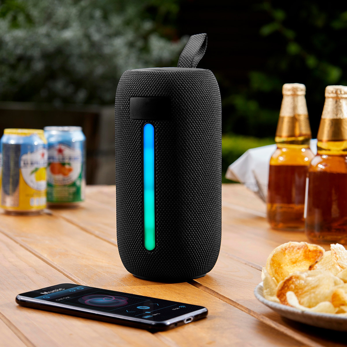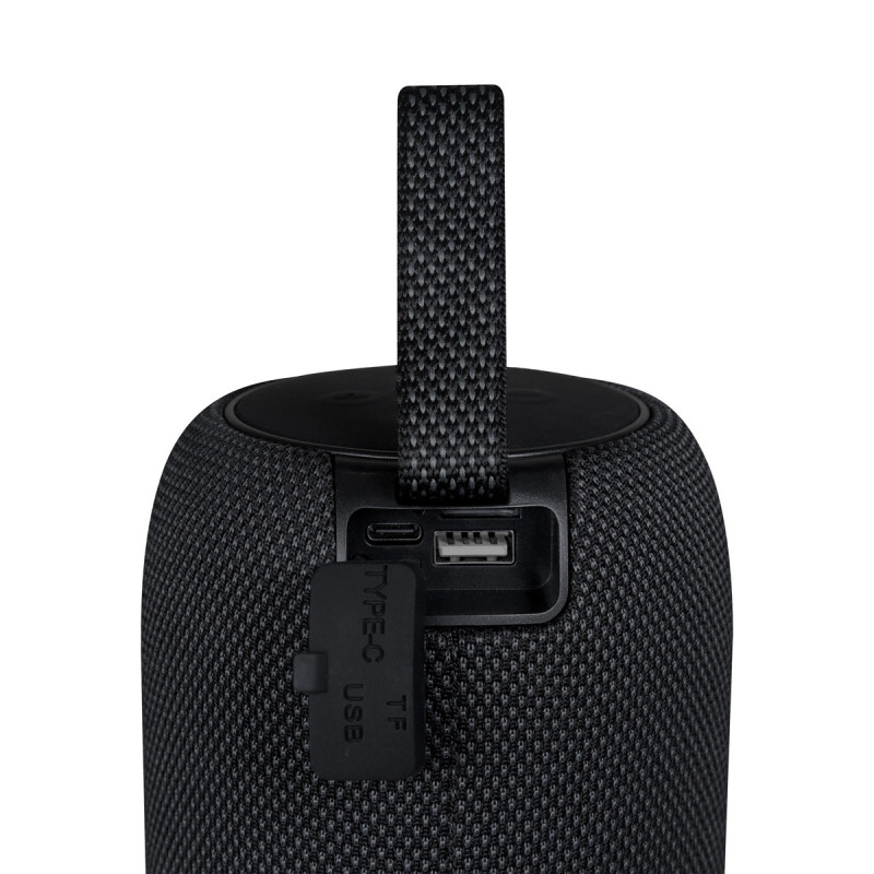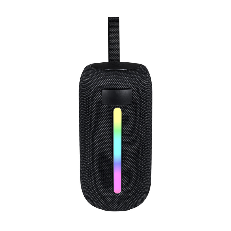 Bocina con tecnología bluetooth 5.3. Potencia 10 W. Batería recargable con capacidad de 1,500 mAh que otorga un tiempo de reproducción de 3 a 5 horas. Alcance de conexión de 10 metros. Incluye iluminación LED con botón independiente para cambiar o ajustar el efecto o color. Además, agrega tecnología TWS que permite sincronizarla con otra bocina del mismo modelo y reproducir música simultáneamente. Puerto de conexión tipo C, USB y ranura para tarjeta TF. Incluye cable con conector tipo C y caja individual.
