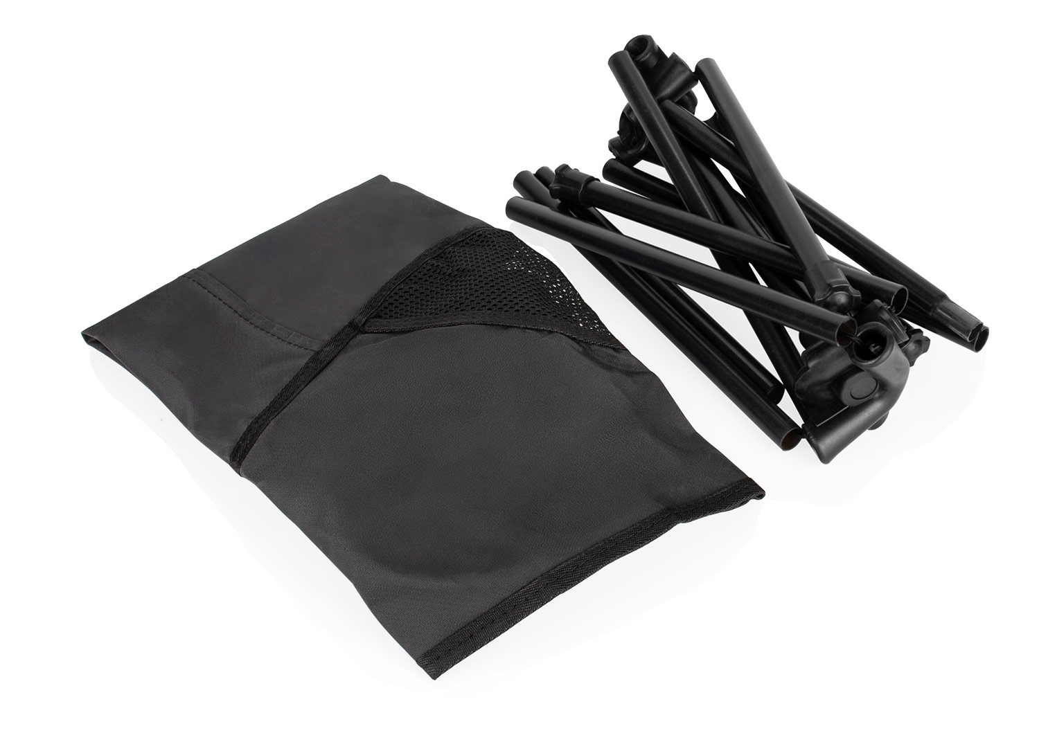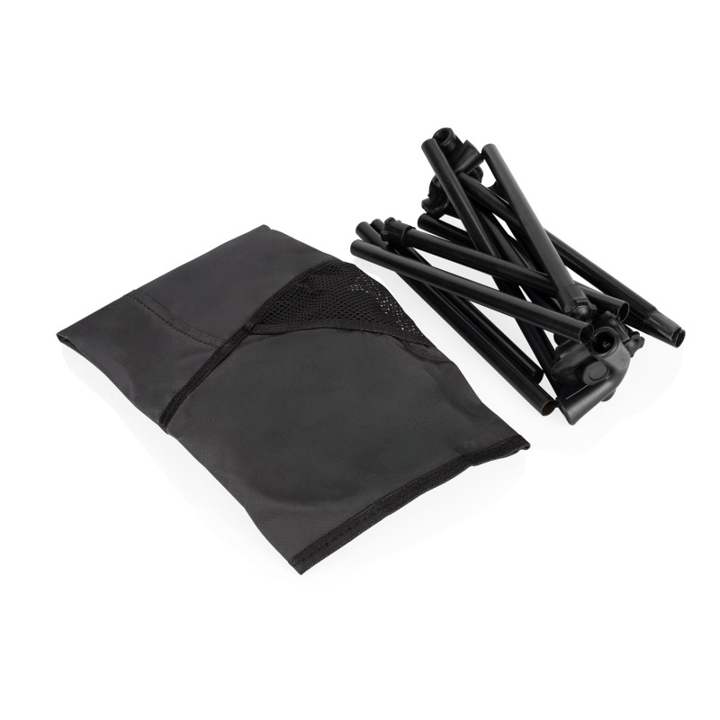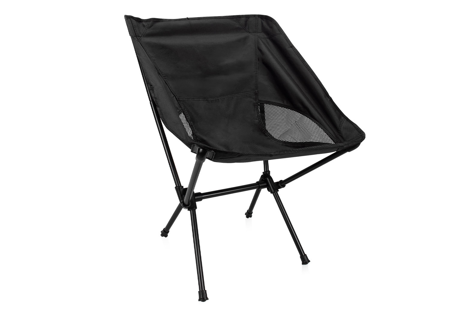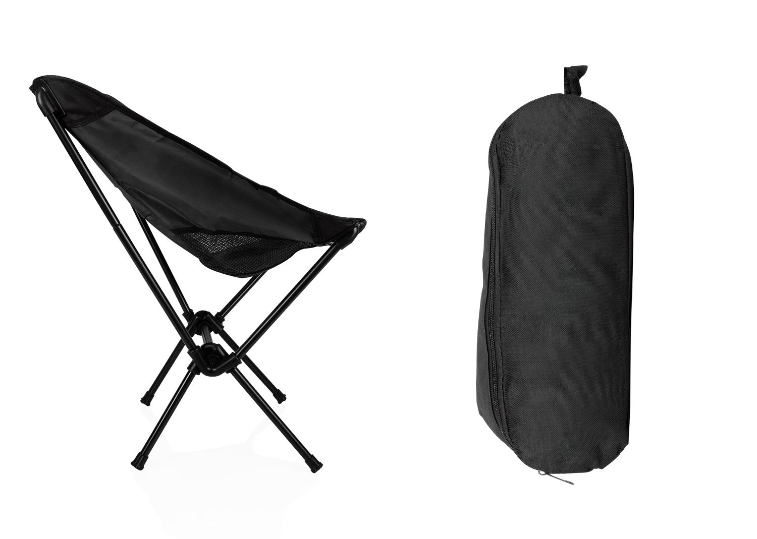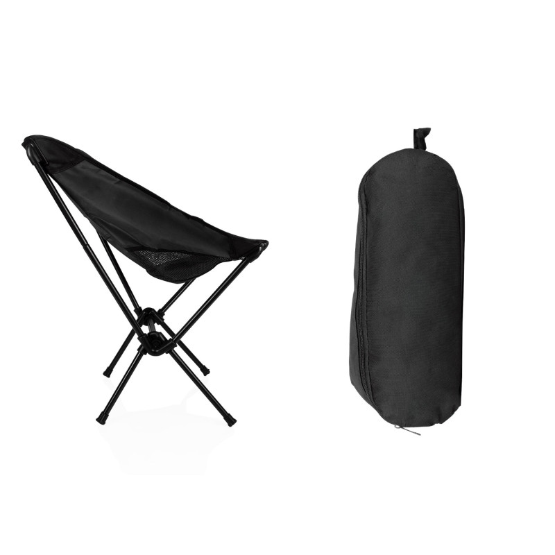 Silla plegable tipo camping, fácil de transportar gracias a su diseño compacto y ligero. Cuenta con estuche incluido que permite guardarla cómodamente cuando no está en uso, ideal para actividades al aire libre. Peso máximo recomendado: 100 kg.