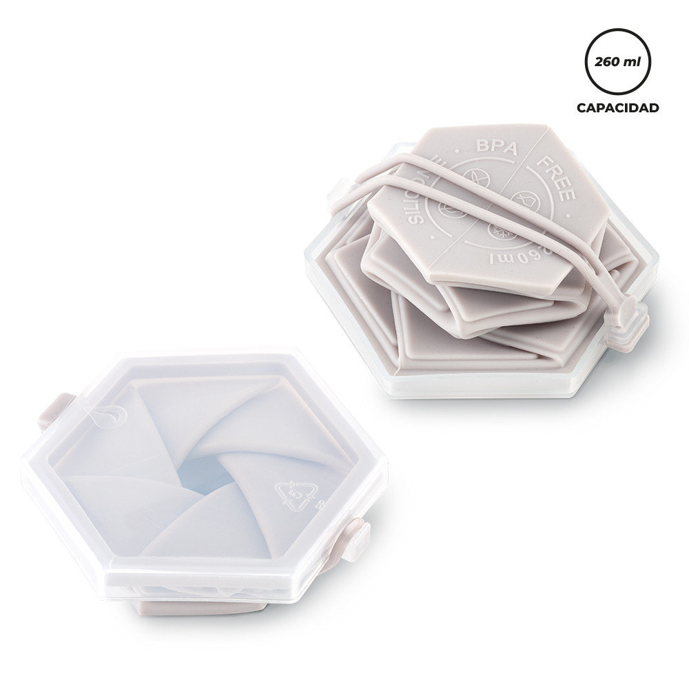 Vaso plegable en silicona con tapa plástica. NOTA: Al ser silicona plegable, la base debe ser ajustada manualmente para mayor estabilidad.