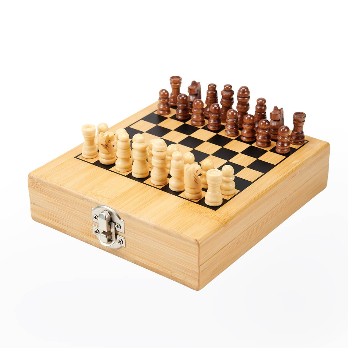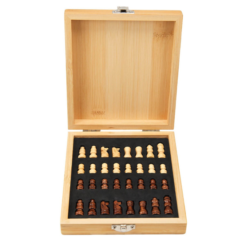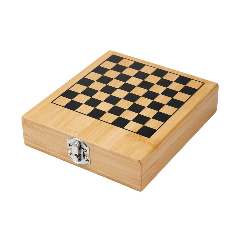 Fabricado en bambu, ideal para los amantes del juego estrategico que valoran la practicidad y el diseno. Incluye 32 piezas en dos tonos de madera (oscuro y claro), perfectamente proporcionadas y almacenables dentro de su propio estuche. El tablero esta impreso directamente sobre la tapa del estuche, lo que permite jugar comodamente y guardar todo con facilidad. Su broche metalico garantiza seguridad durante el transporte. La madera es un producto natural el cual puede presentar variaciones en tonalidades y vetas. Incluye caja Individual.
