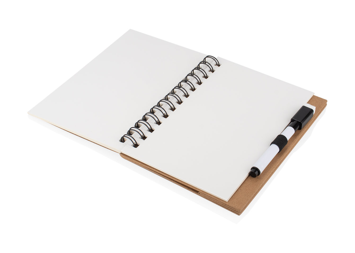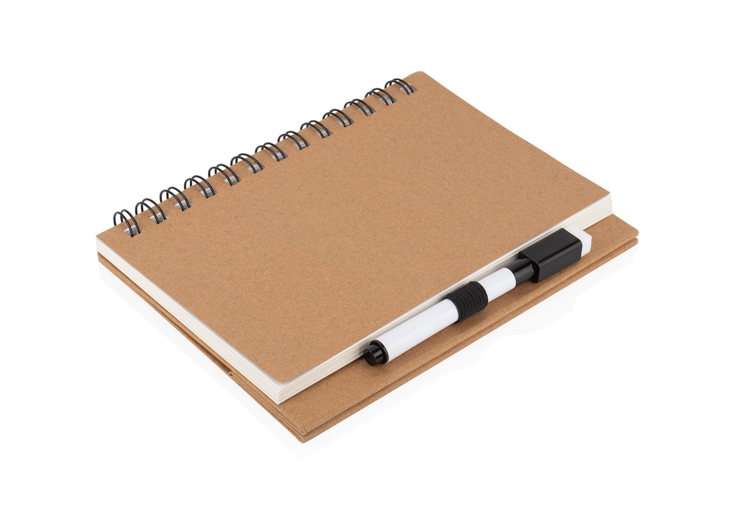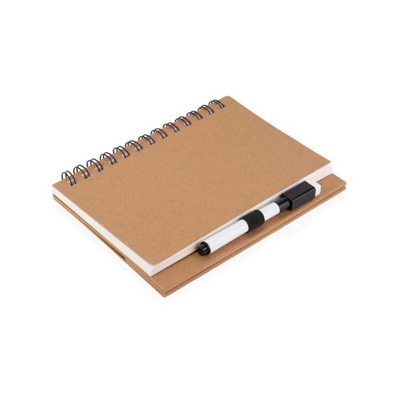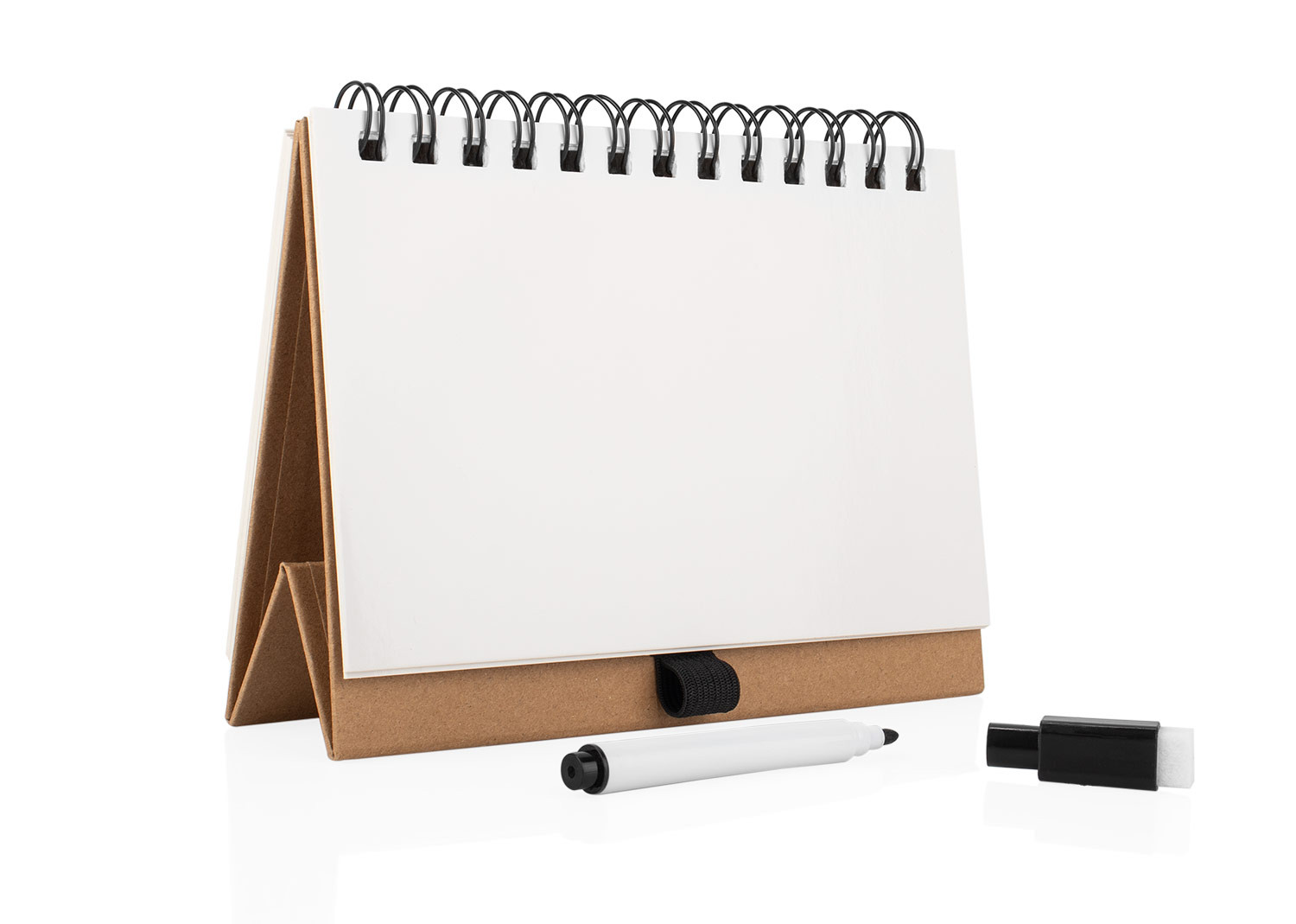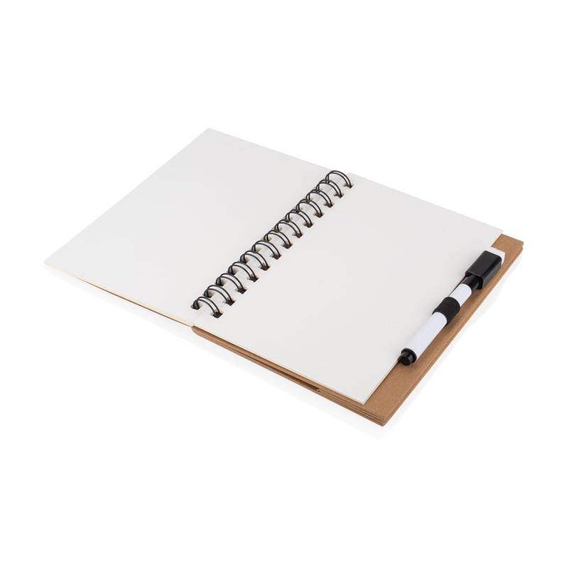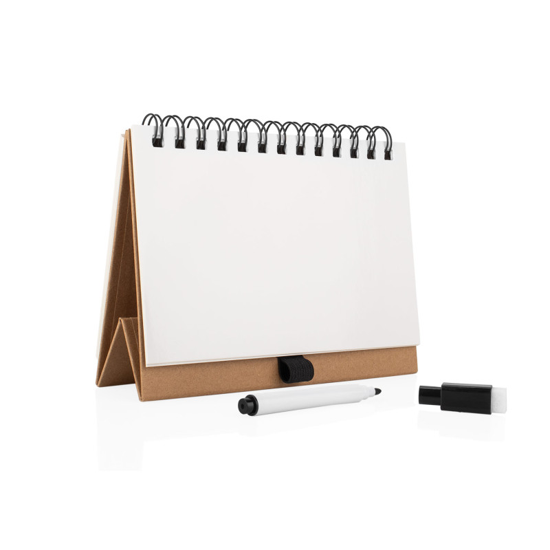 Práctica pizarra blanca con diseño tipo libreta y espiral superior, ideal para anotaciones rápidas. Incluye marcador borrable con compartimiento integrado en la base para mantenerlo siempre a mano. Su formato compacto permite colocarla en posición vertical como atril, perfecta para escritorios, oficinas o uso escolar.