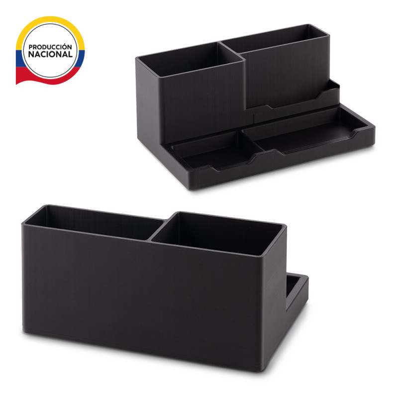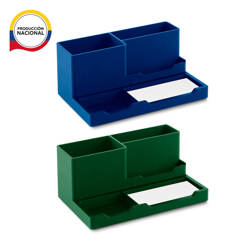 Organizador de escritorio plástico. Incluye taco de papel de 100 hojas.