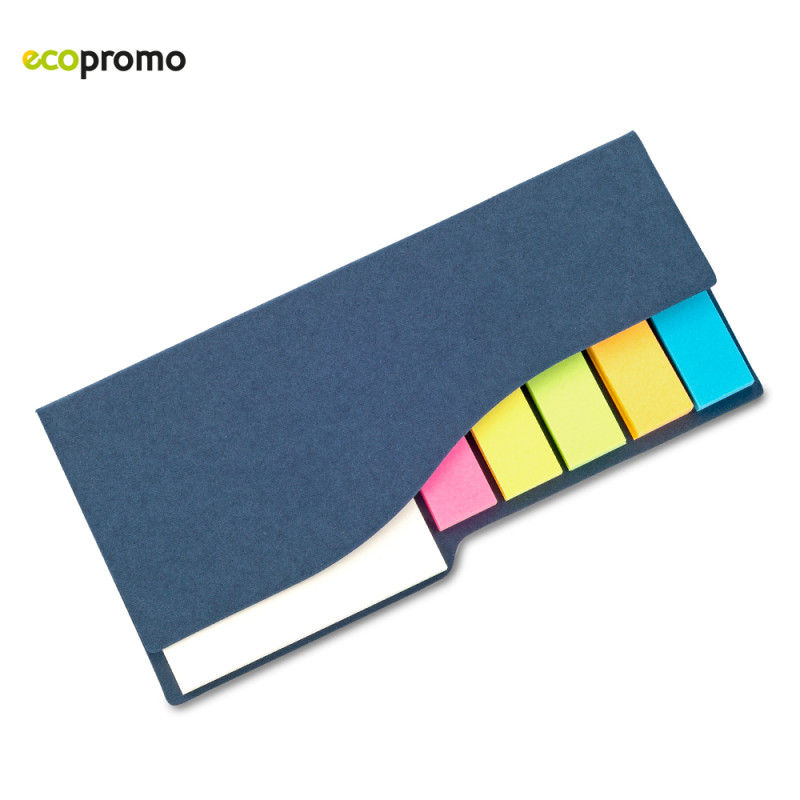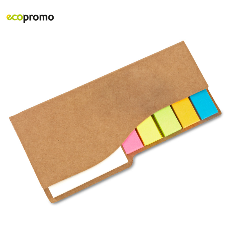 Set de cartón con 5 stickies de colores y un portanotas de 40 hojas.