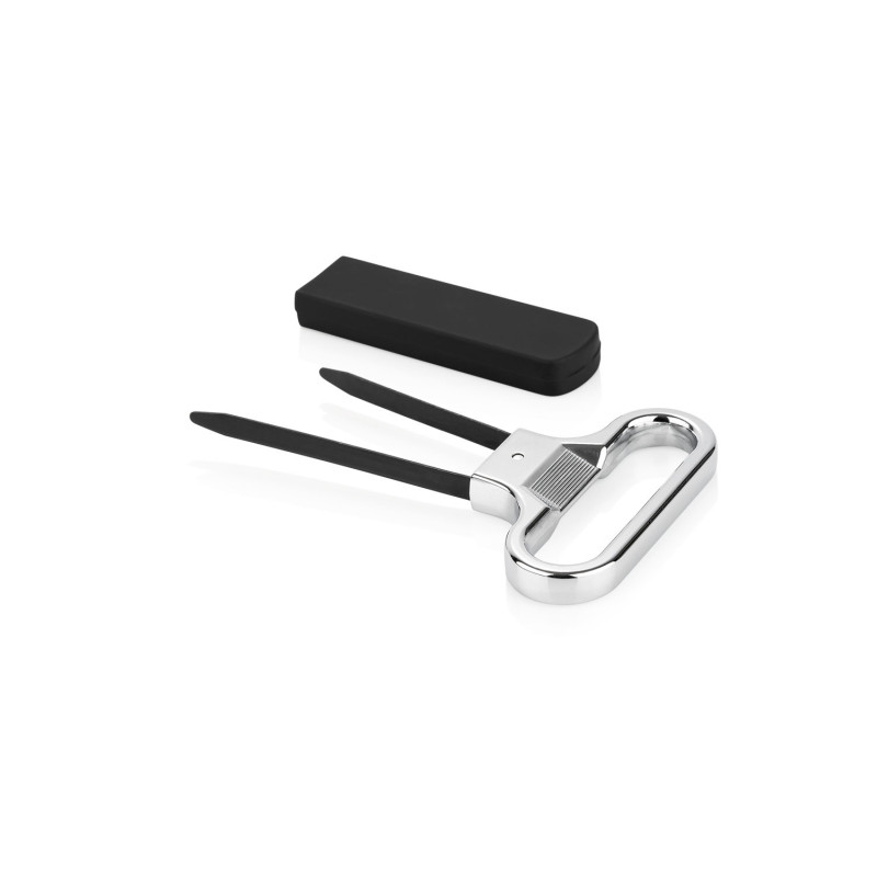 Dos láminas de diferentes alturas para una buena inserción entre el corcho y la botella. Extrae fácilmente los corchos y los deja intactos, incluso los que son frágiles y viejos. Incluye una funda para no dañar las láminas.