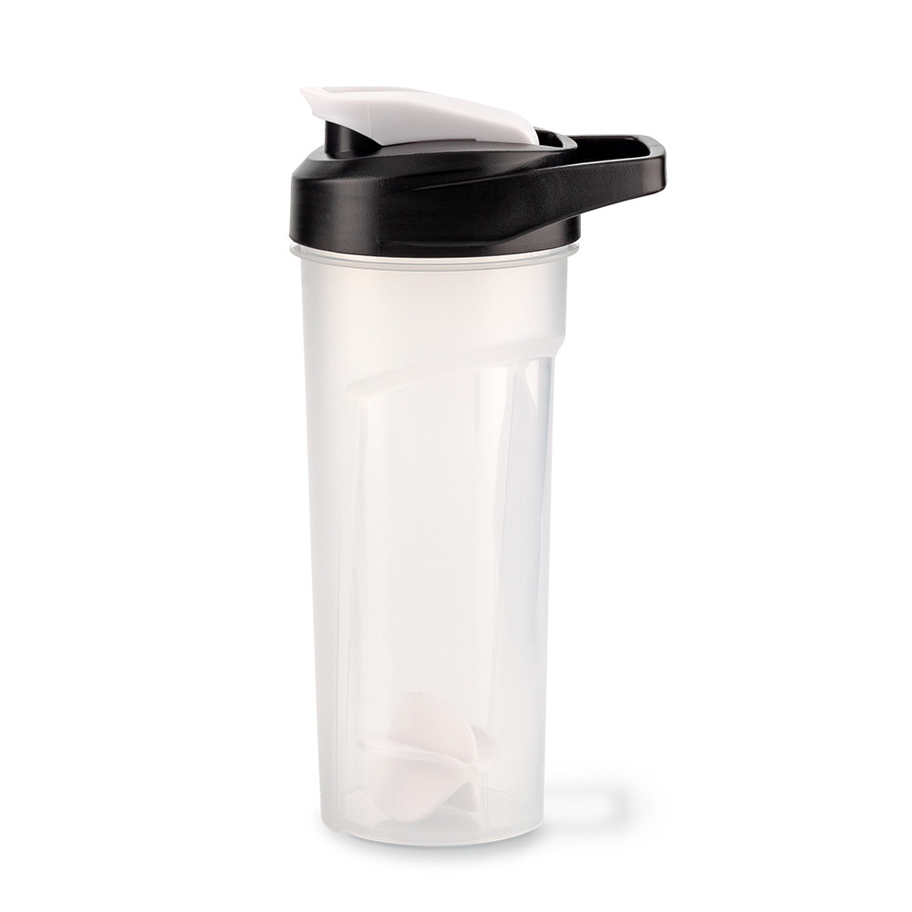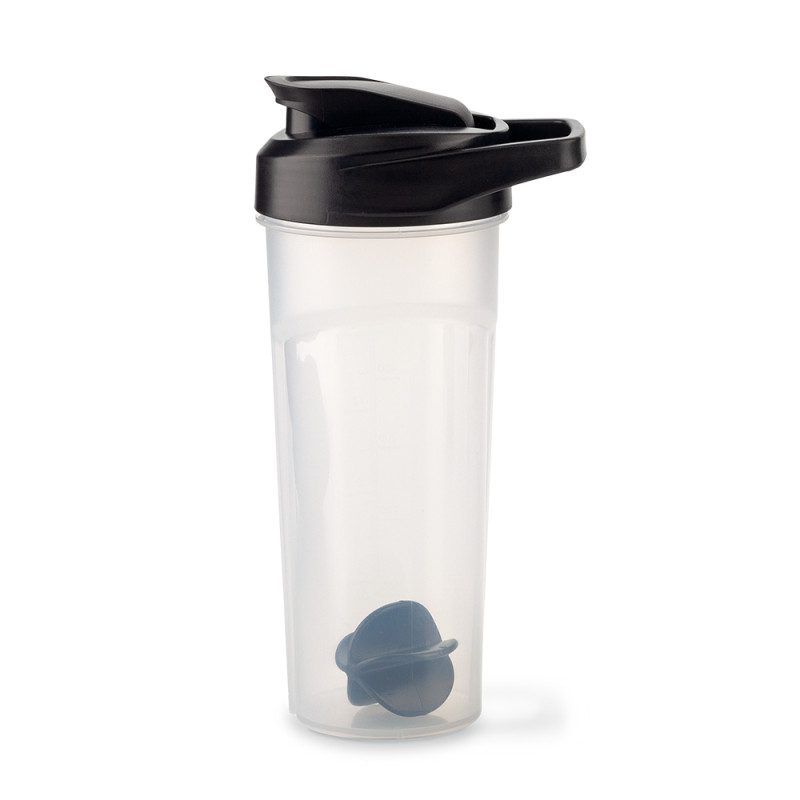 Mug - mezclador plástico con tapa pestaña de rosca. Incluye bola mezcladora (Shaker).