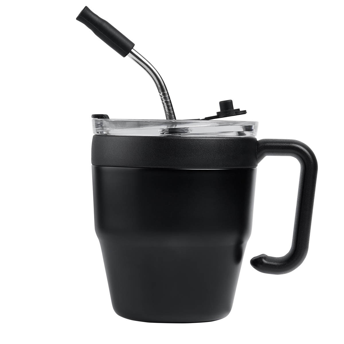 Doble pared. Cerrado al vacio. Pared interna y externa de acero inoxidable. Tapa push de plastico con sobre tapa de silicon removible y ranura especial con tapon para popote. Incluye popote metalico con boquilla de silicon. Mantiene temperatura caliente 6 hrs y temperatura fria 8 hrs aproximadamente. Incluye caja individual.
