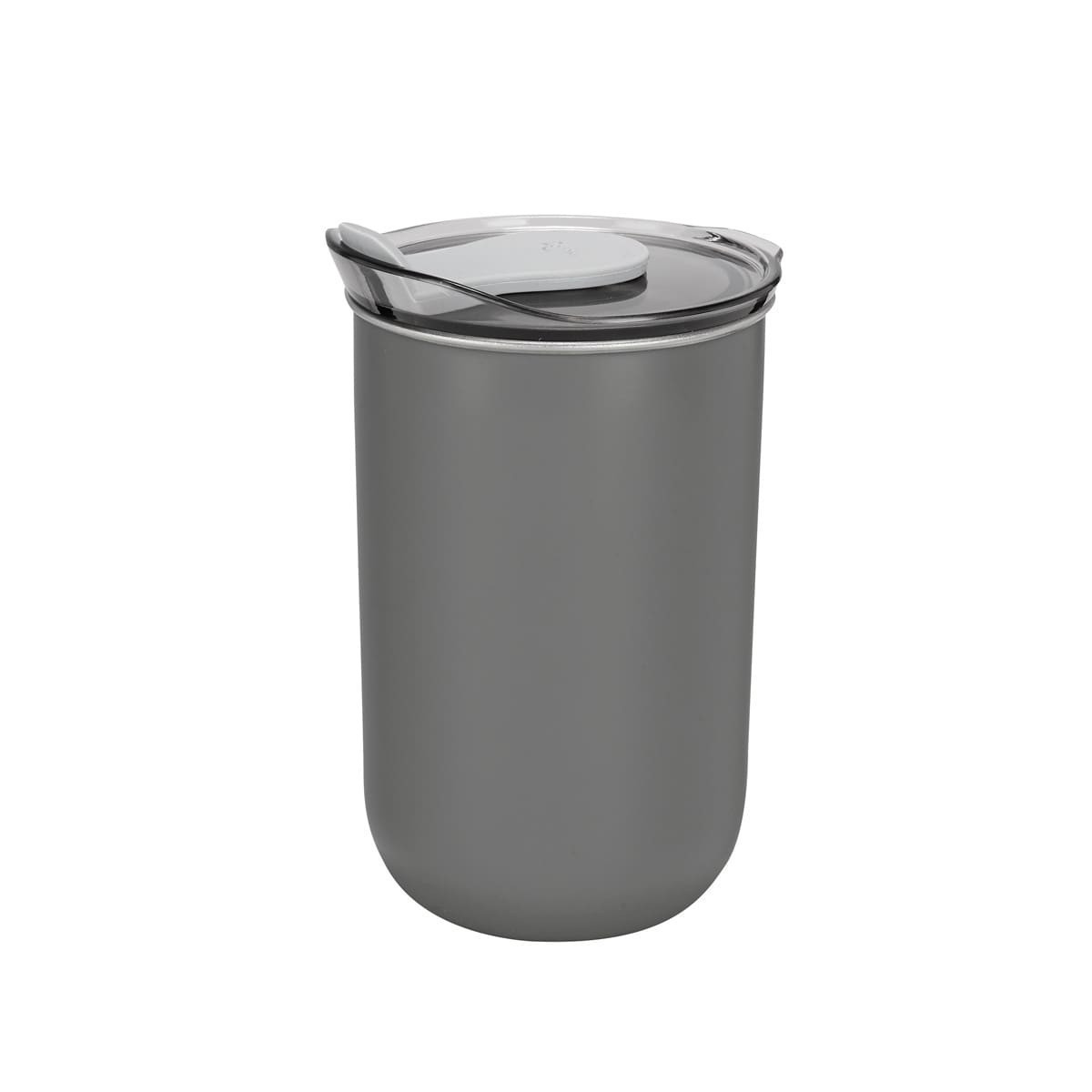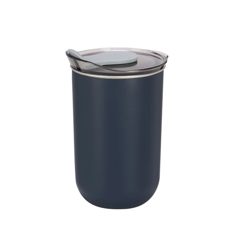 Doble pared. Pared interna de acero inoxidable y externa de plástico. Tapa de plástico con sistema push y sobretapa de silicón movible. Incluye caja individual.300ml.